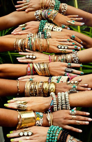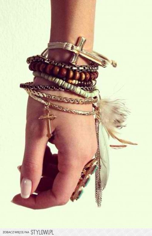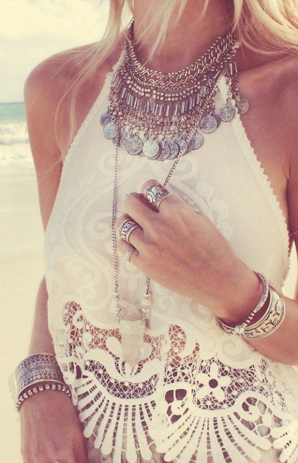 En el Boho Chic los accesorios son bien representativos, por lo general no son muy refinados (como oro, perlas, plata..) sino más como piedras de jade y tejidos con algunos hilos.