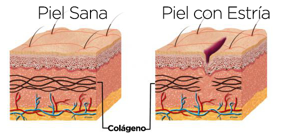 - Mal estado de la piel debido a nuestro estilo de vida; lo más adecuado para no desarrollar estrías es una buena alimentación, beber al menos 2 litros de agua al día e hidratar-cuidar nuestra piel.