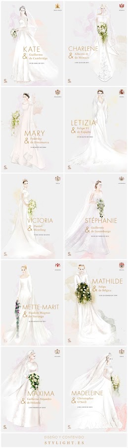 5- Los 10 vestidos de novia más emblemáticos de las princesas europeasLa revista S Moda comparte una infografía realizada por stylight.es con dibujos de los vestidos de novia más bonitos de las últimas bodas reales europeas, con motivo de la boda de Suecia que tuvo lugar ayer. La verdad es que a la boda le presté poca atención, pero la infografía me resltó preciosa. ¡Me encantan los vestidos de novia!