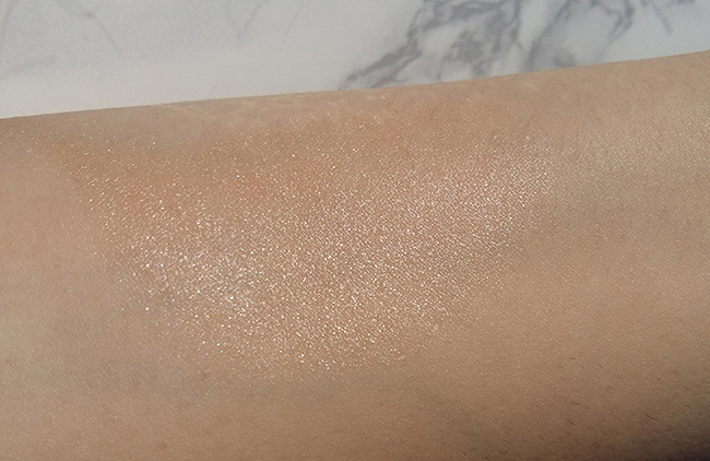 Es un iluminador con destello, pero muy fino, con un subtono dorado rosado que queda infinitamente bien en pieles claras: otros iluminadores son más cálidos y acaban por ser demasiado para las que somos pálidas.