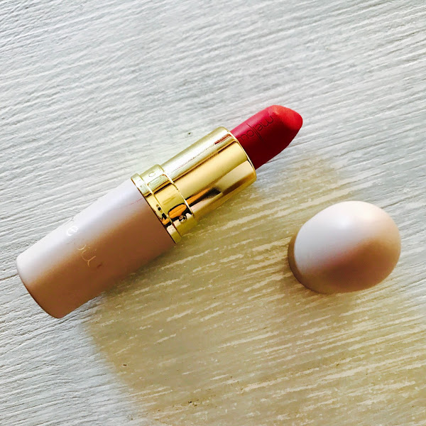 Este labial rojo ciruela algo oscuro, además de ser altamente pigmentado, aguanta muchísimas horas dejando un acabado mate.