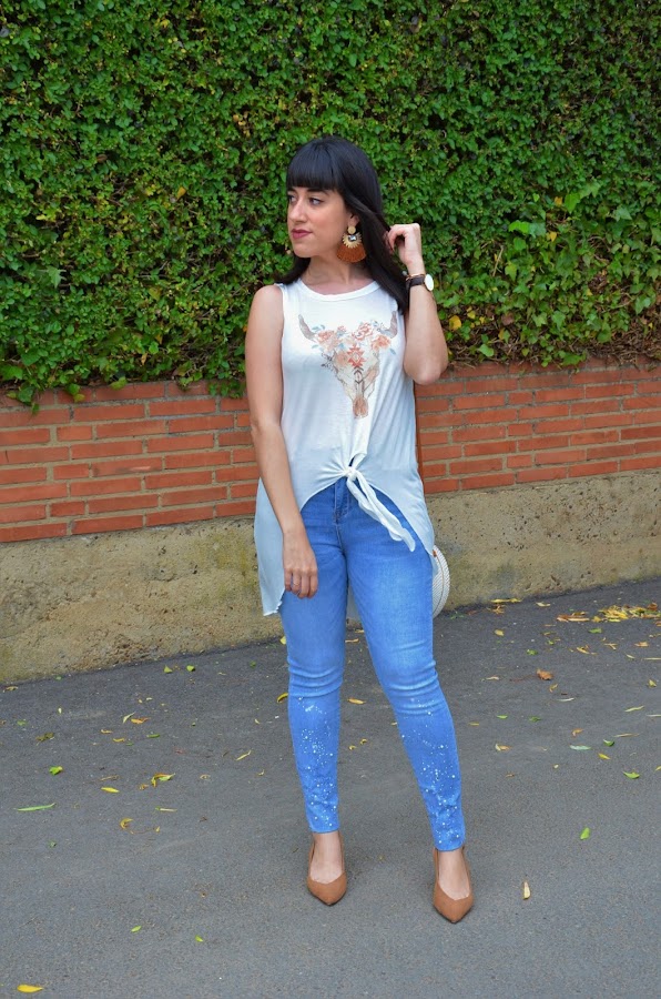 Por otro lado, los jeans de Shein que ya son uno de mis favoritos. Me encanta el color y especialmente el detalle de las manchas, perlas y brillantitos es una pasada. Os lo he dicho muchas veces y es que los jeans de Shein son una maravilla.