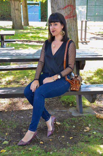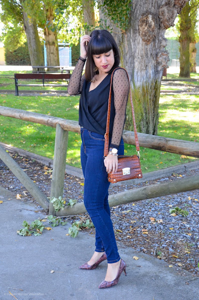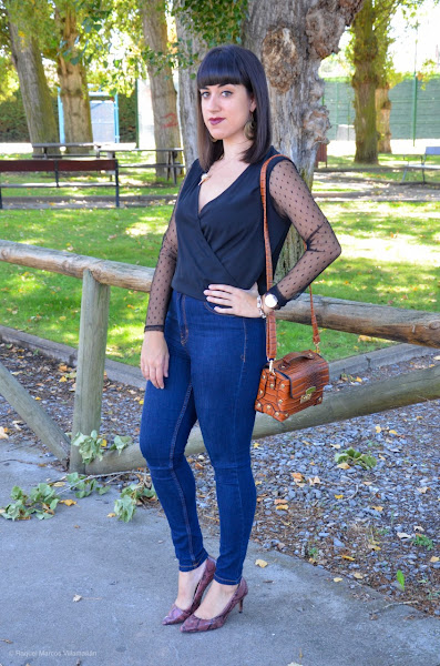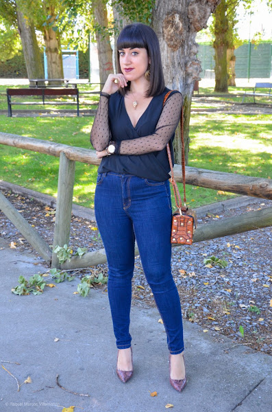 Lo cierto es que puesto que no tenía mucho tiempo para hacer las fotos, la combiné de forma sencilla con vaqueros y stilettos. Pero prometo enseñárosla con falda para que veáis que bonita queda con un outfit más arreglado.