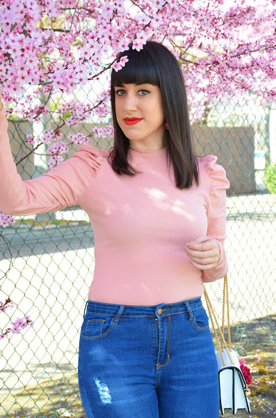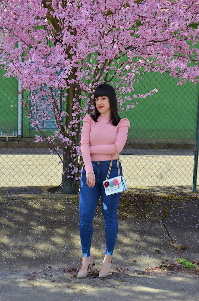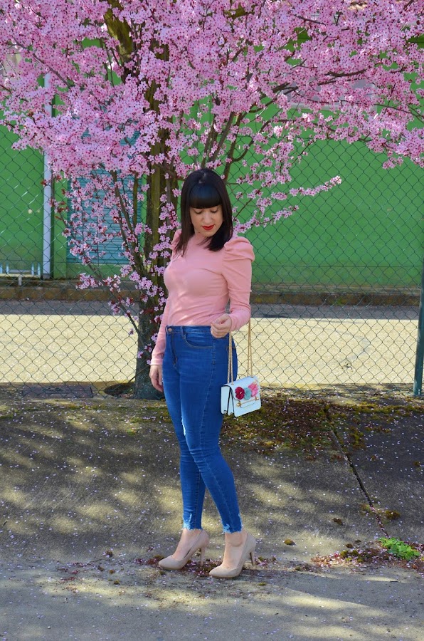 Además con el look que hoy os traigo casi hasta me mimetizo con las flores con este precioso top rosita de canalé de Shein. Es una monada, estiliza un montón al ser tan ajustado. Y las mangas abullonadas me encantan, además de que son muy discretas. La tenían disponible en un montón de colores a cada cual más bonito.
