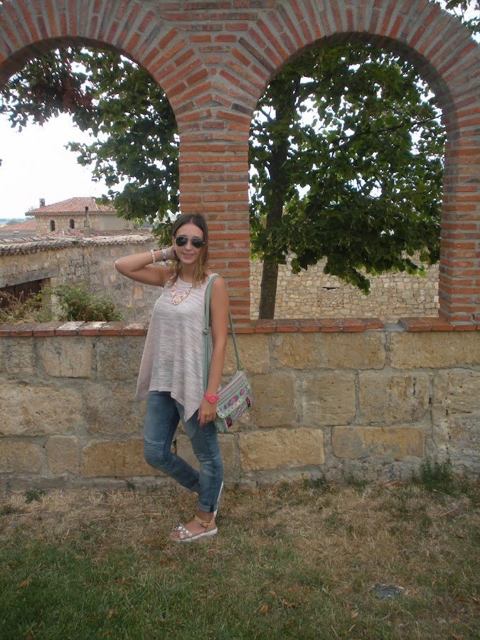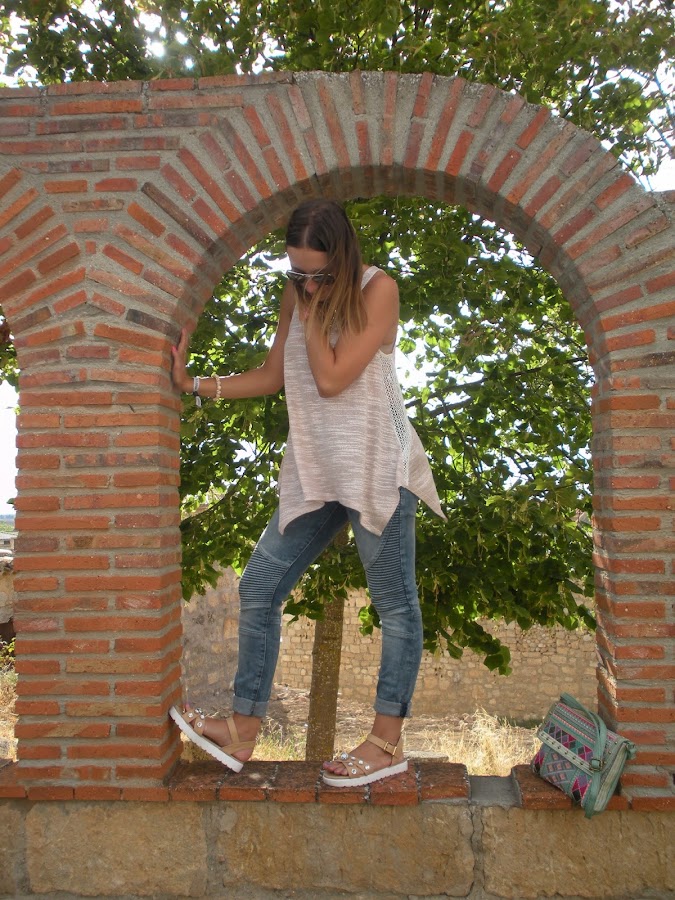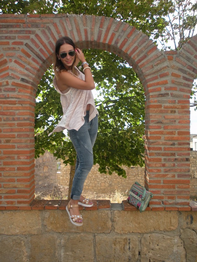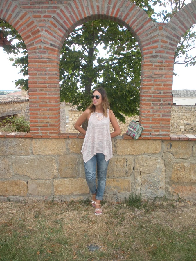 Este top me lo cogí el otro día en lefties y creo que le voy a sacar mucho partido. La tarde que lo estrené nos fuimos de turisteo por pueblitos de la provincia, así que tenía que ir cómoda y como ya no hacía el calor de otros días, tuve que recurrir a los jeans largos.