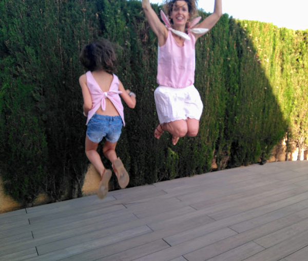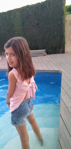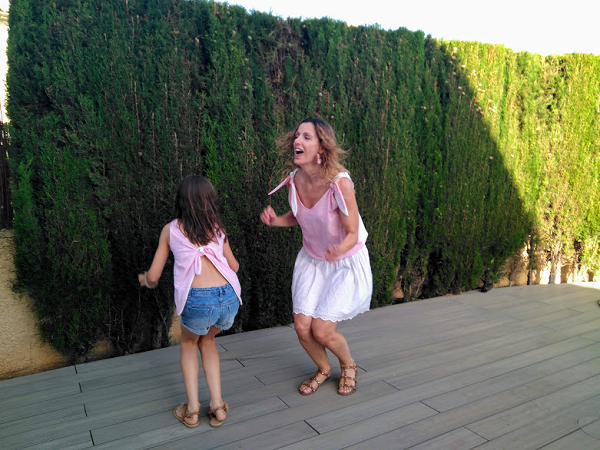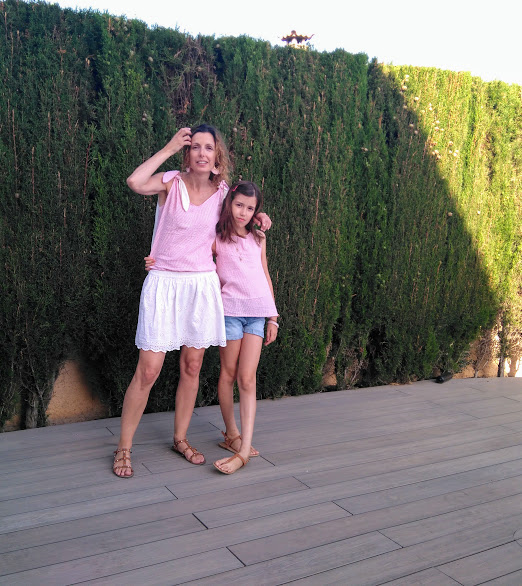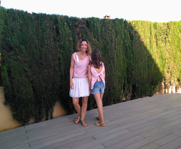 Primero le hice el top a Paula porque le gustaba mucho esta tela. Así que pensé en hacer algo un poco diferente a lo que suelo hacer. En cuanto le propuse que fuera con un nudo en la espalda, le encantó.