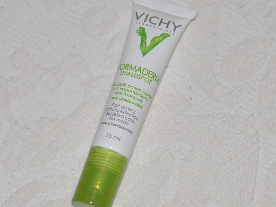 Normaderm hyaluspot de Vichy, os lo enseñé en haul y aunque lo compré casi a mediados de Enero,tengo que decir que es un producto de diez.Este producto es un tratamiento localizado para granos e imperfecciones,su textura es de gel y seca de forma rápida los granitos.Un aspecto a tener en cuenta es que,a mí por lo menos,me "escuece" un poco cuando me lo aplico,pero no es algo insoportable y a los pocos minutos se me pasa.