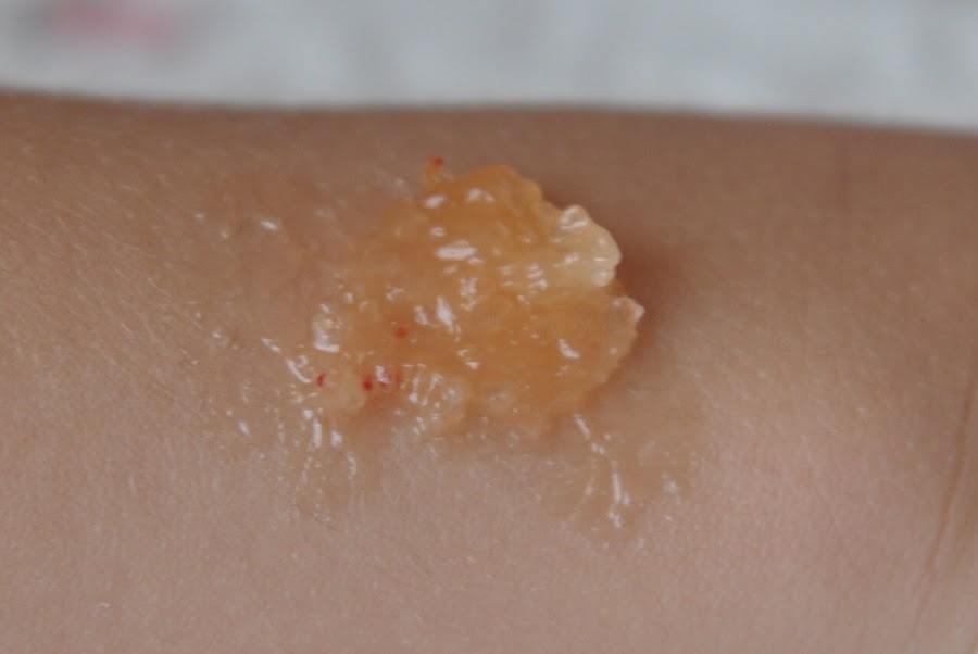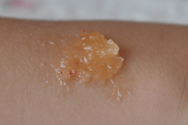 Como os he dicho el gránulo exfoliante es grande,o al menos a mí me lo parece,y la textura me recuerda a los exfoliantes corporales de la marca Ziaja tipo "gelatinoso".