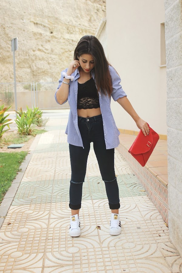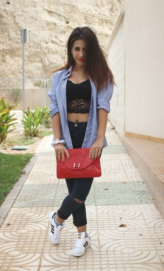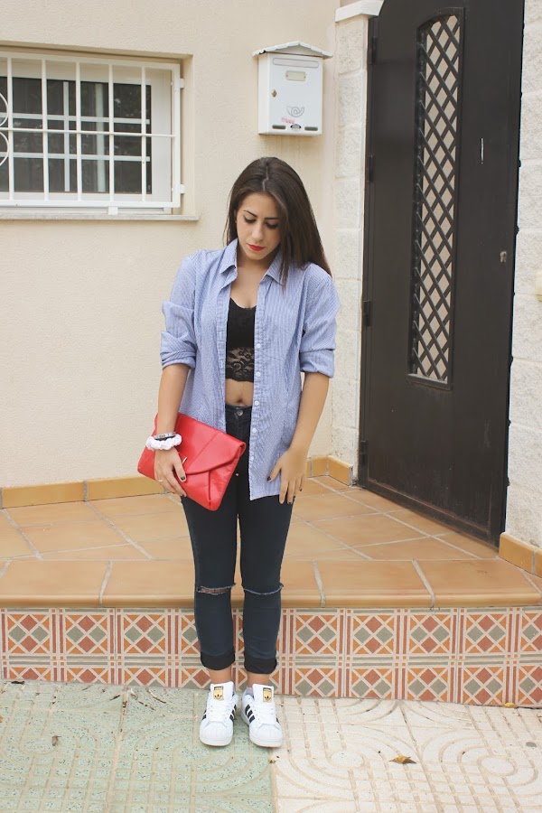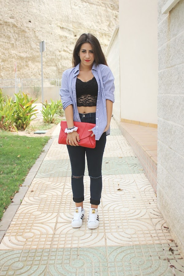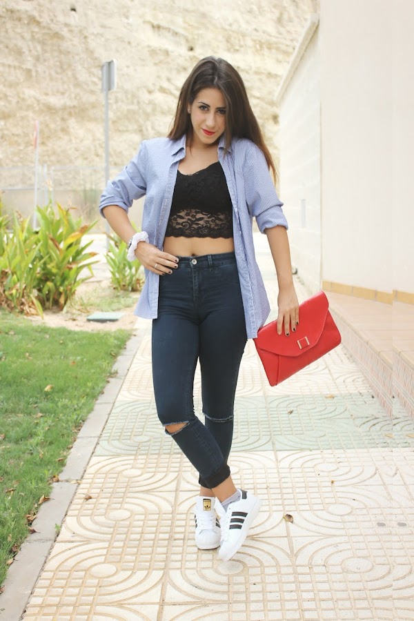 Today I want to show you a look that I love it. Lingerie clothing was a must the past winter but this summer too. I finally have my lingerie top. With this top I got a touch so gothic chic but I combined it with a open shirt for not show so much my body. Other times I wore only the top but with tall trousers or a tall skirt.