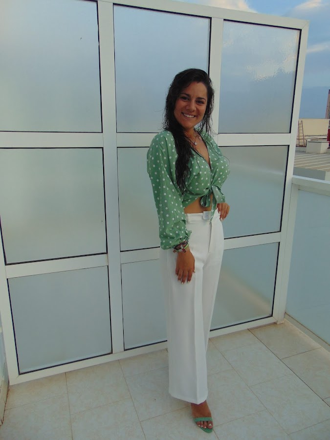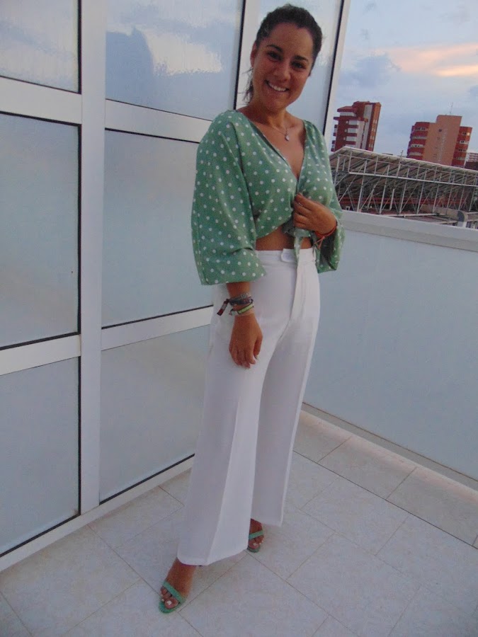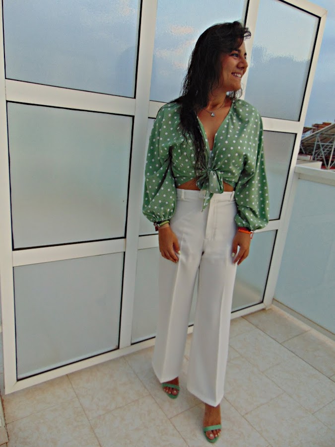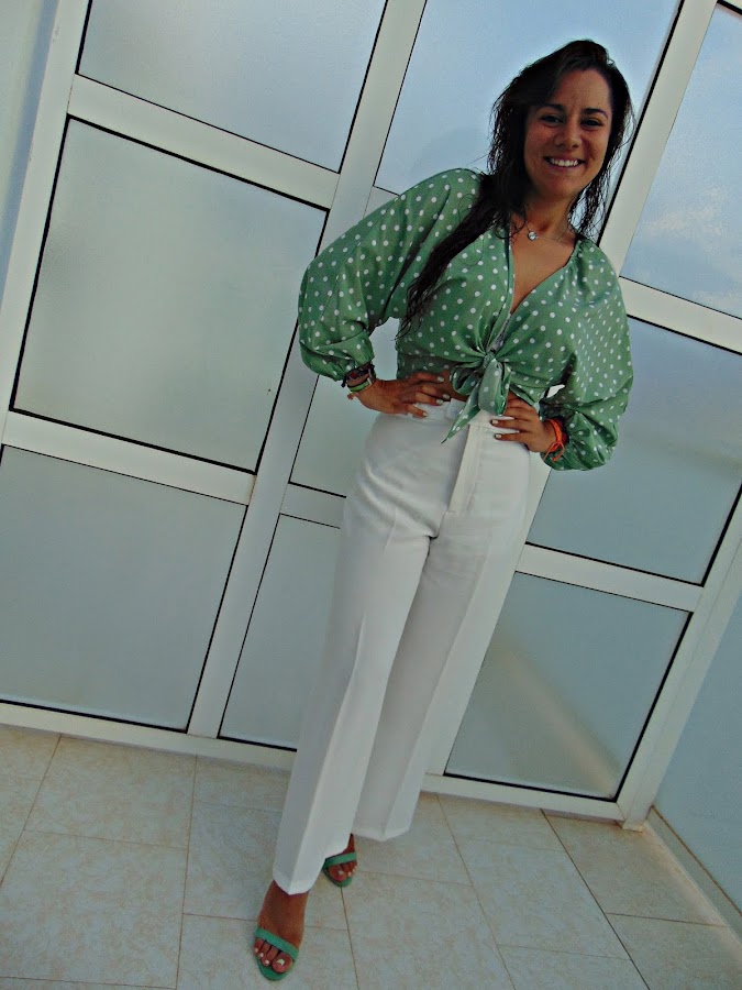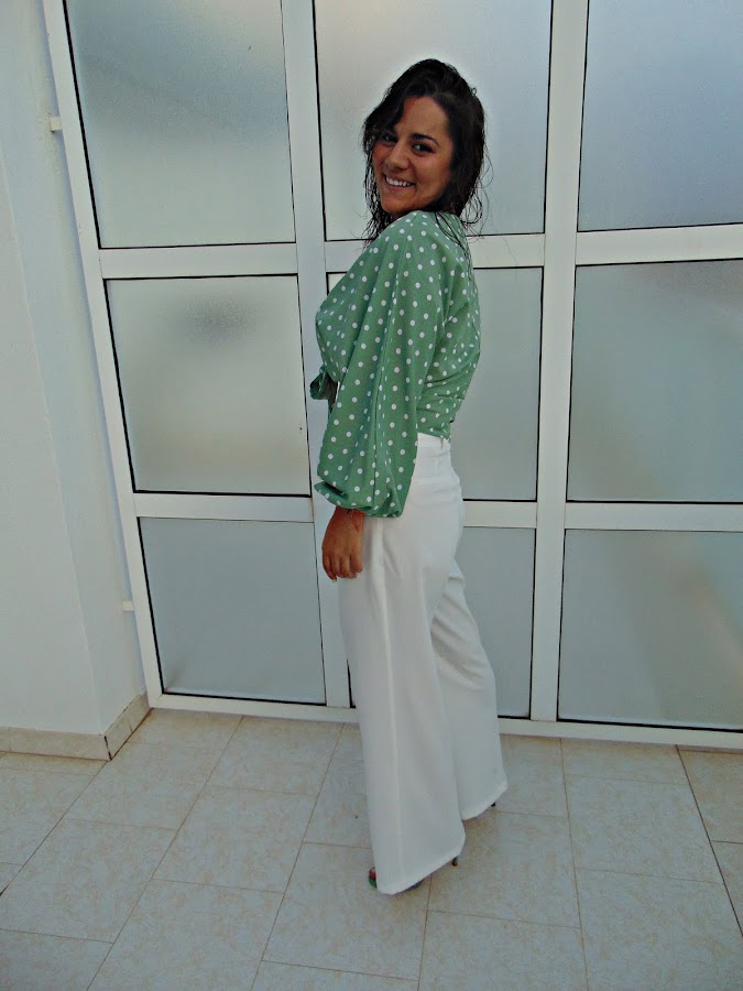 Buenos días mis alahitas. ¿ Que tal llevais la semana? Espero que suuper bien. Hoy os enseño un Top muy bonito, desde que me llegó me tiene enamorada. Es una colaboración con uno de los proveedores de Aliexpress. Me parece que queda ideal con las mangas abullonadas y el escote en lazo y abierto. Lo combiné con estos pantalones de Zara blancos de traje y las sandalias de Maripaz que son otra pasada.