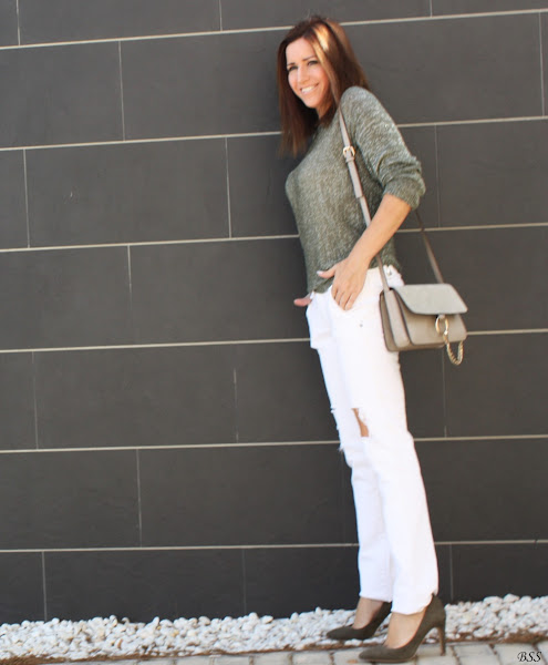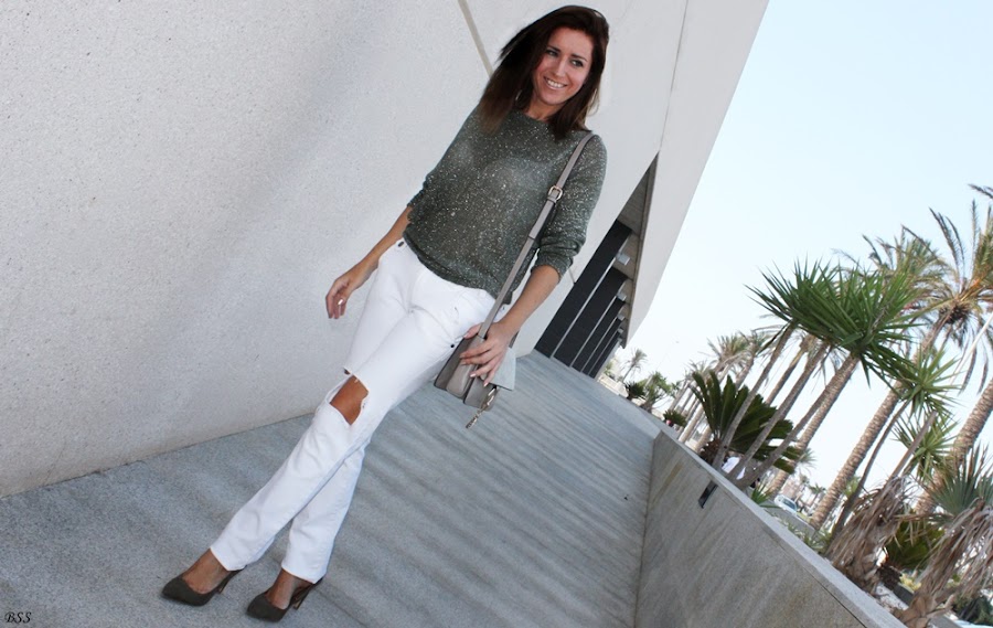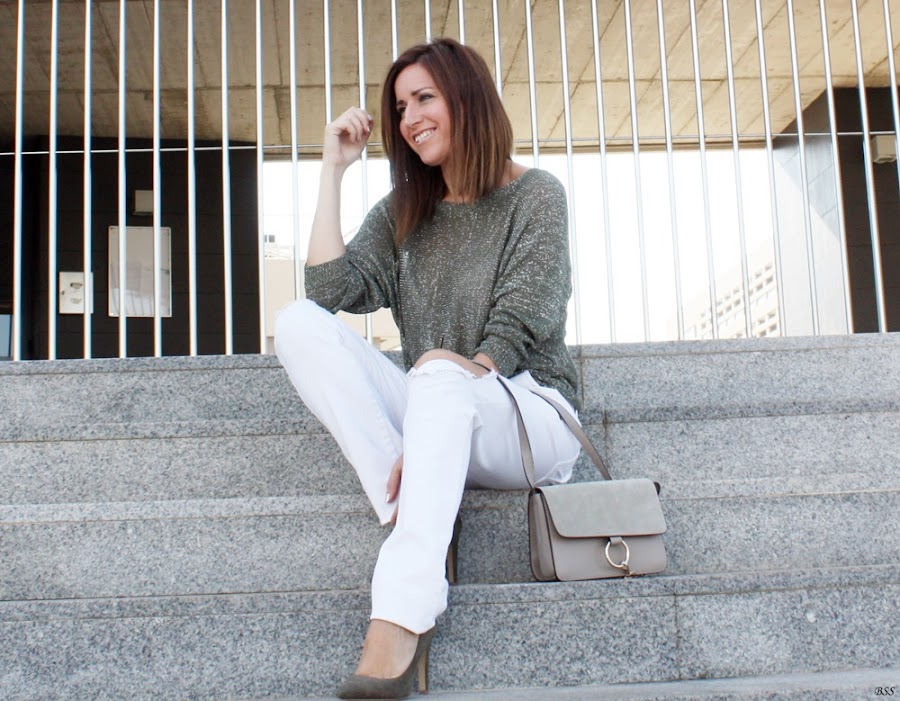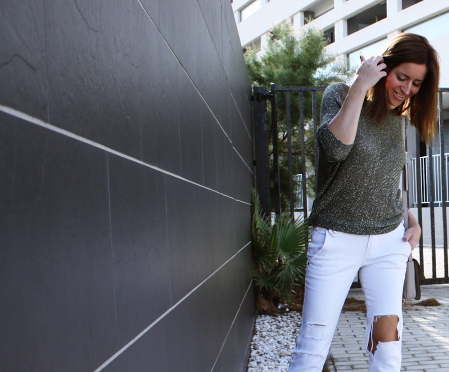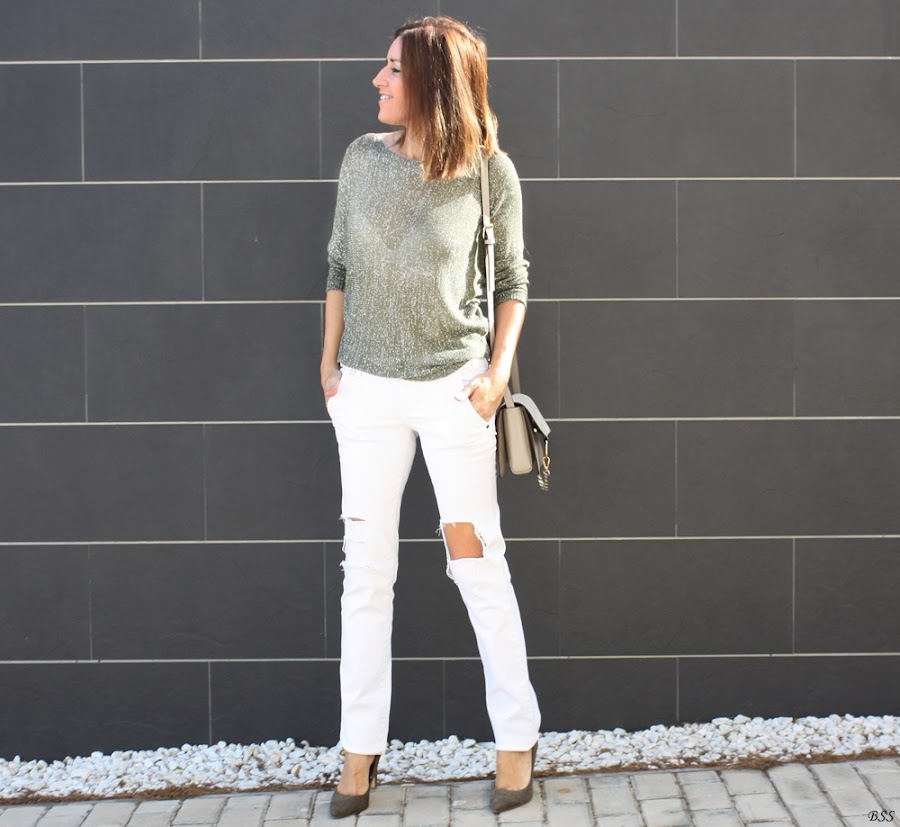 Hoy os enseño una de ellas, un jersey semitransparente de manga al codo que me parece ideal para el entretiempo y en un tono verde/plomo perfecto