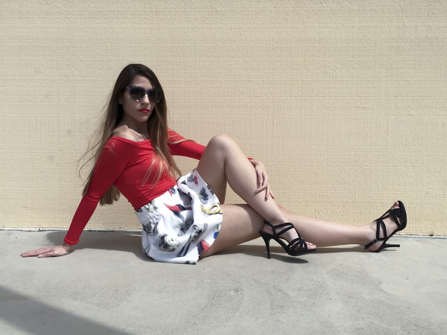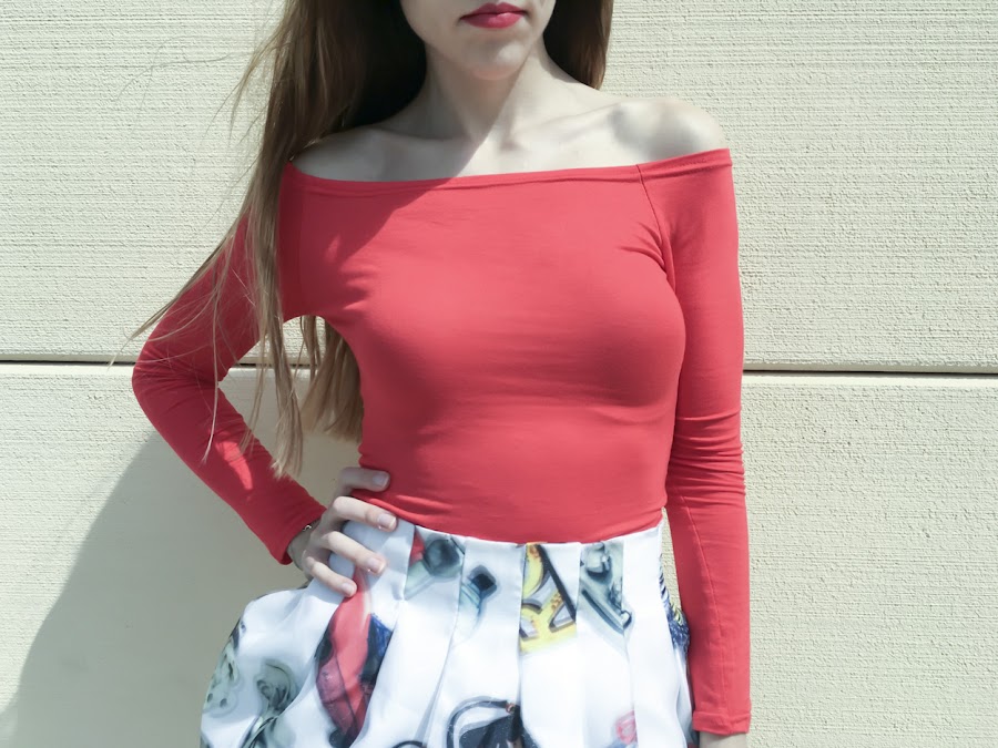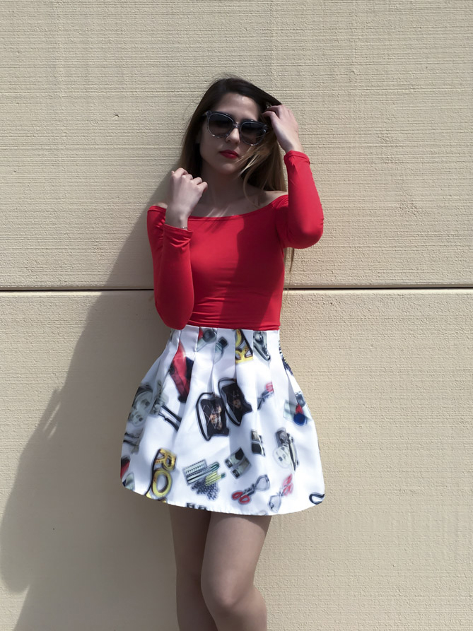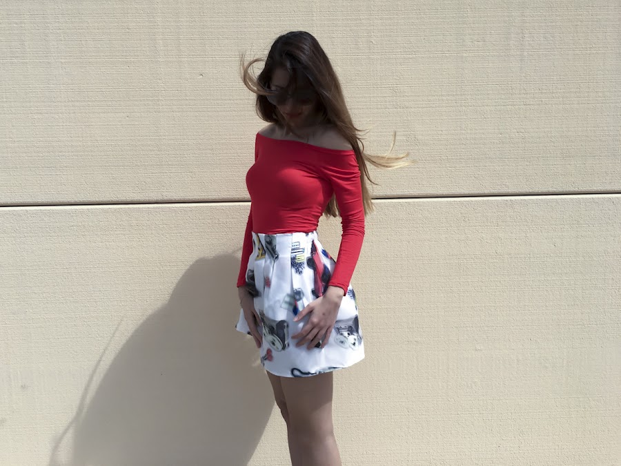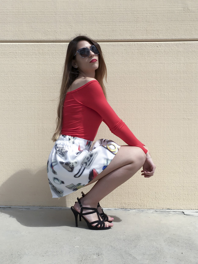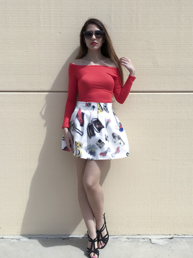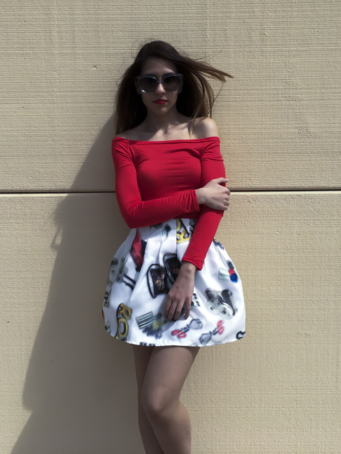 Y vamos al look!! Para hoy he elegido una falda globo con un estampado súper original, que hace un efecto borroso, en blanca con toques de color rojoa. La he combinado con un top de hombros descubiertos rojo, unos stilettos negros y mis gafas de sol de Missoni de Veo Veo Centro óptico! Espero que os guste el look de hoy! Sed felices y nos vemos en el próximo post!