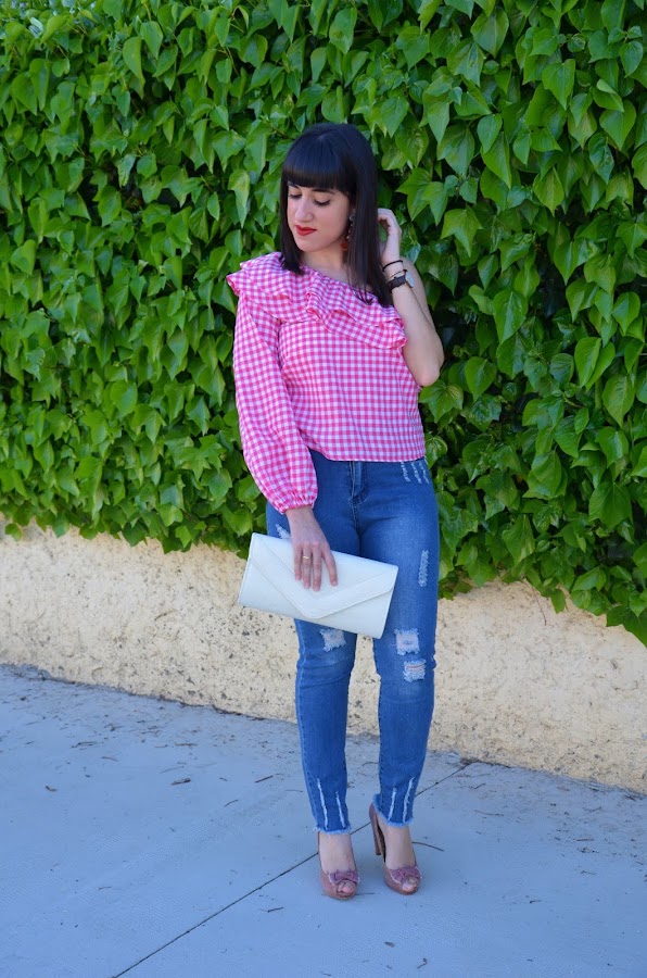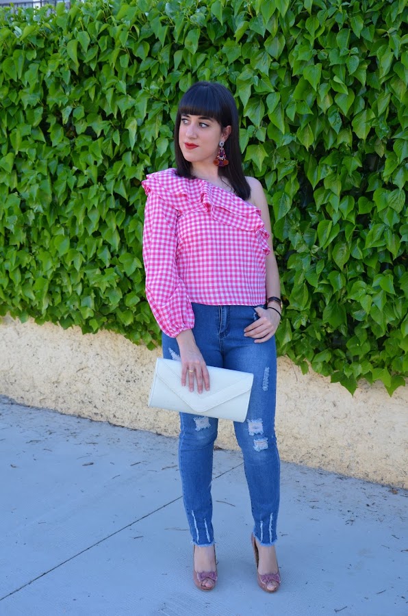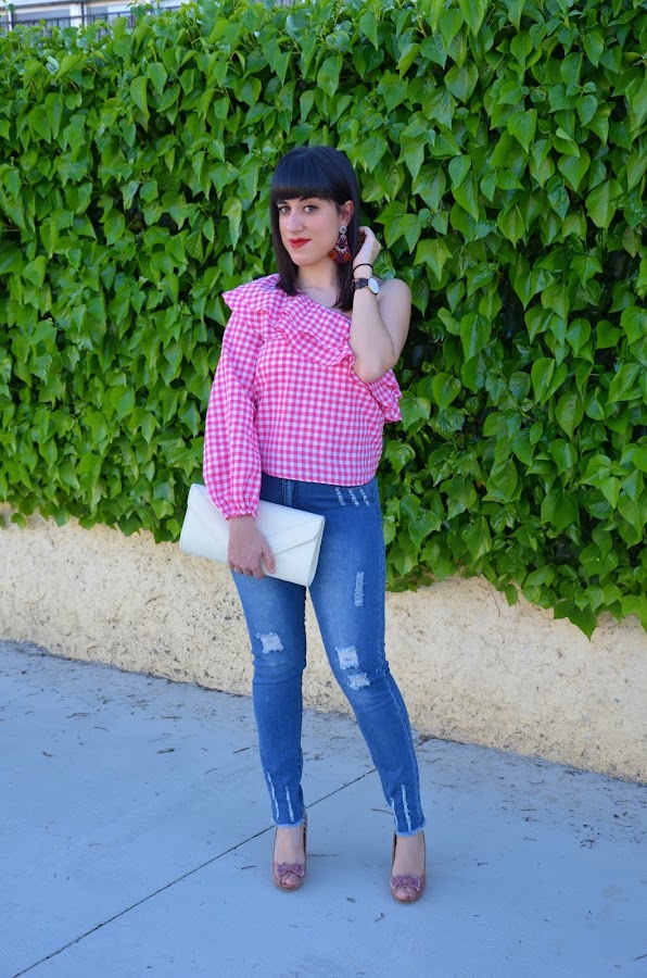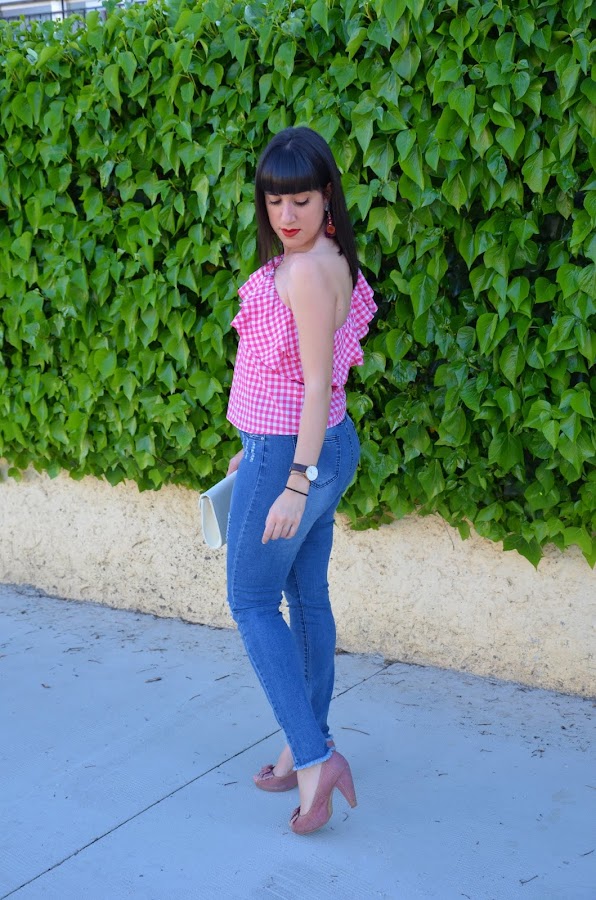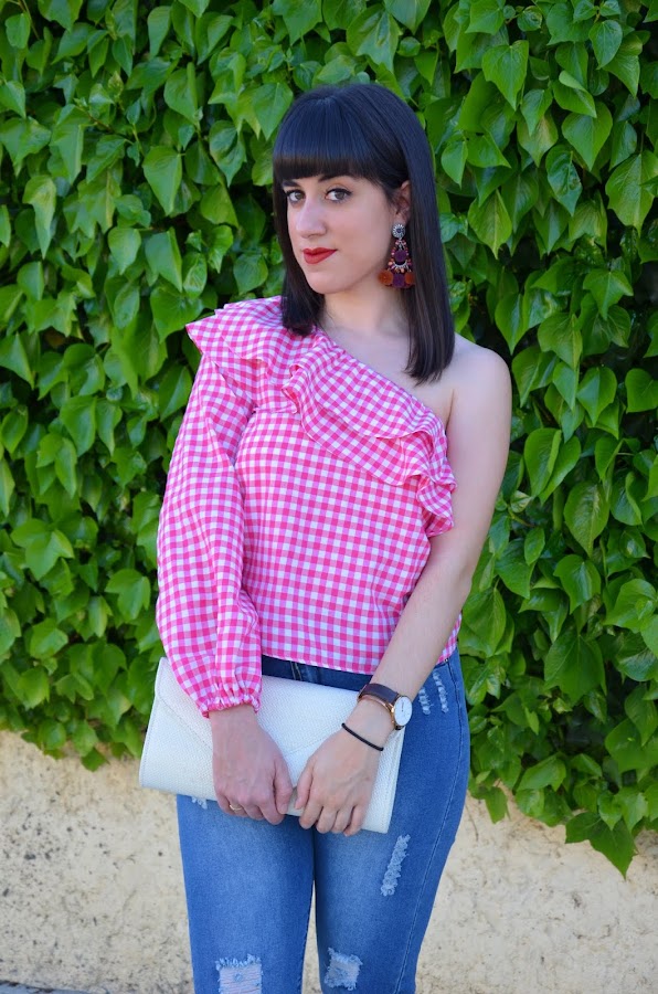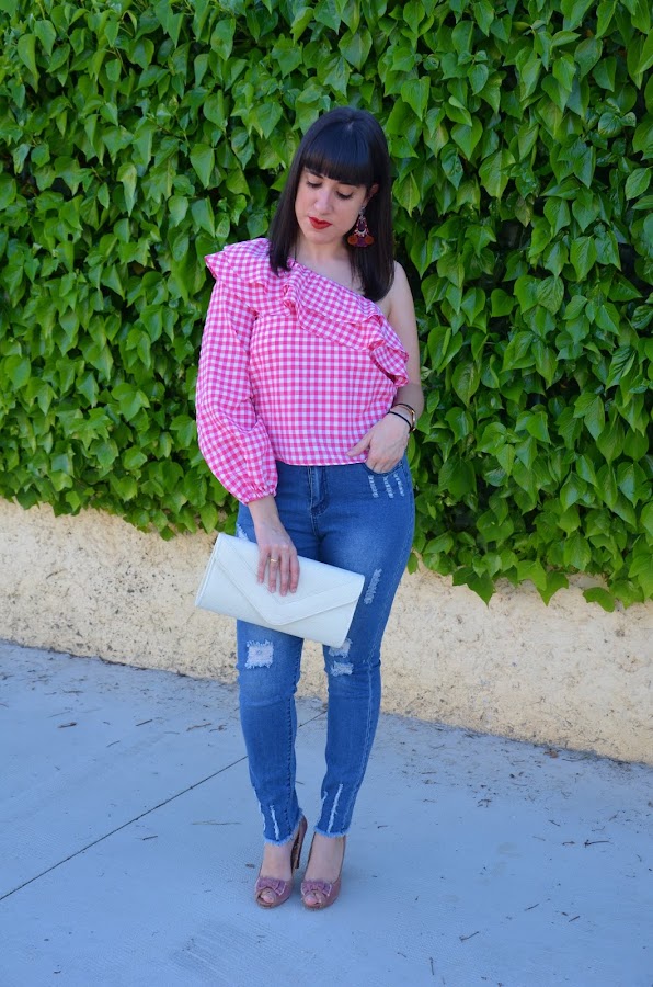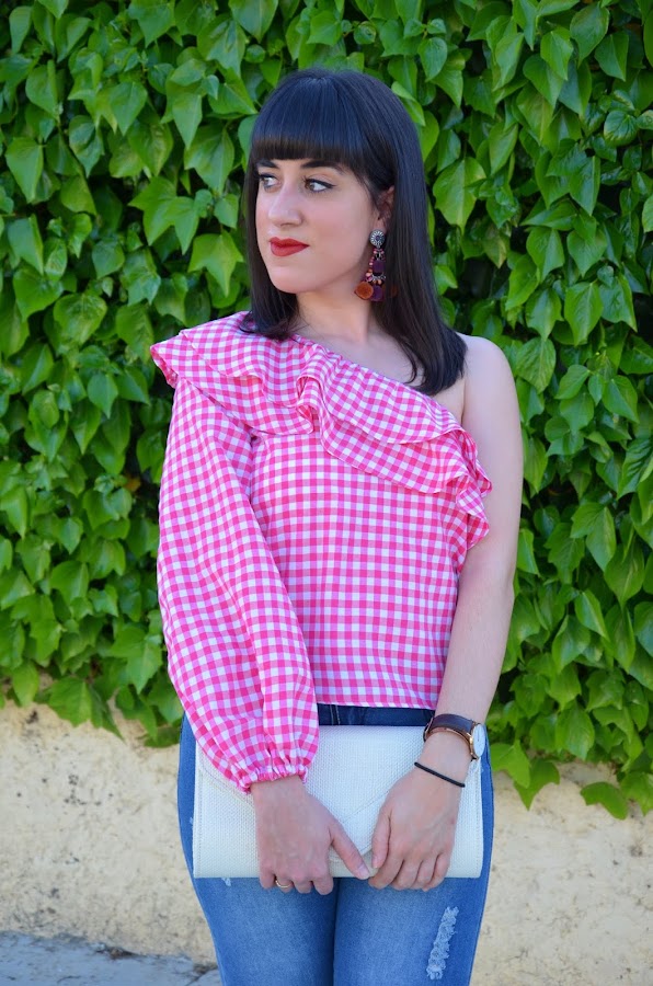 Vamos con el look de hoy, si hay un estampado típicamente veraniego son los cuadros vichy, en esta ocasión en color rosa fucsia. Este top de Shein fue amor a primera vista. Es muy fresca y alegre, además me encantan las prendas de una sola manga.