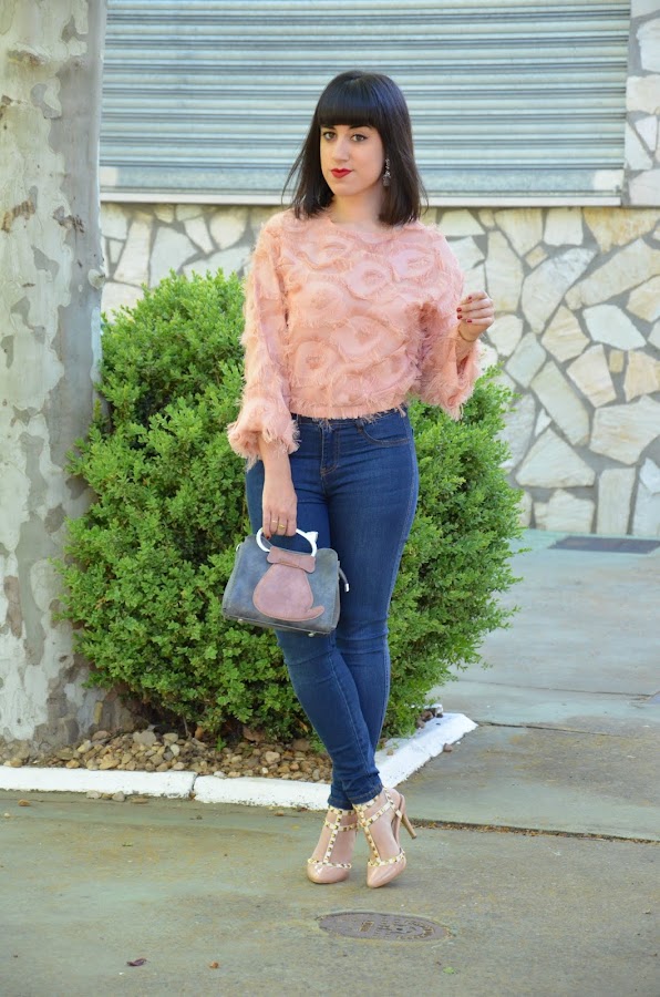 De vez en cuando hay que ver la vida de color de rosa y ese es el color protagonista del look de hoy con top de flecos de Shein. Es super original y llamativo. Es mas bien un crop top y tiene goma ajustada en la cintura. Lo tienen en mas colores, de hecho no descarto pedir el marrón porque es precioso también.