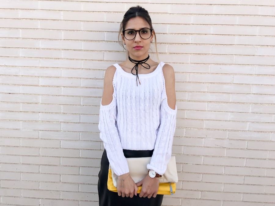 El prota del look es un jersey blanco blanquísimo de hombros descubiertos de LOOKBOOK STORE. Simplemente, me encanta. Este tipo de jerseys con ese escote en los hombros van a ser los reyes de la primavera. Lo que más me gusta de este jersey es que queda igual de bien con unos jeans de manera casual o bien para looks más arreglados.