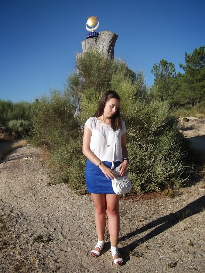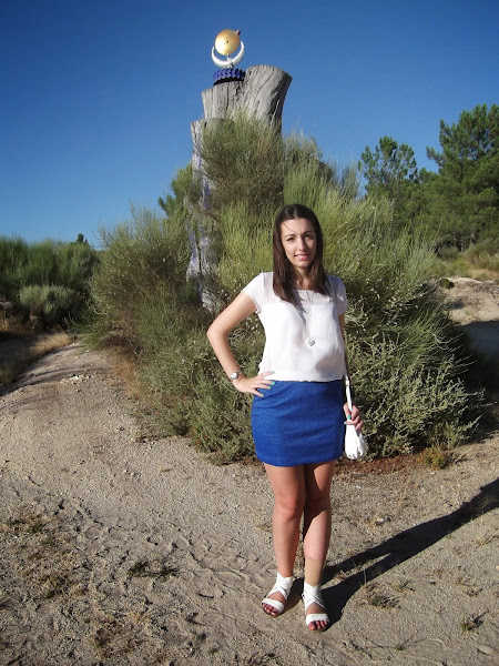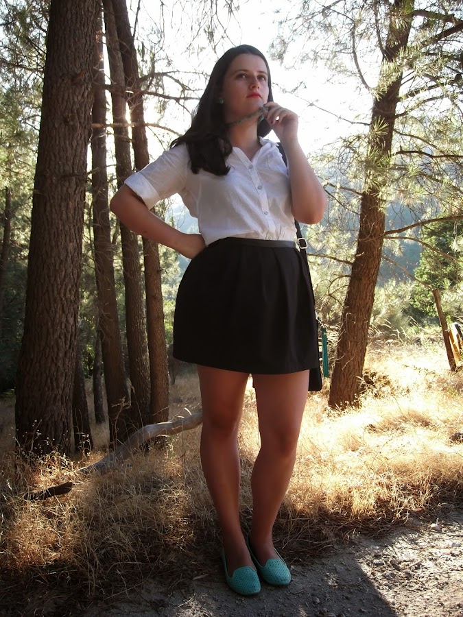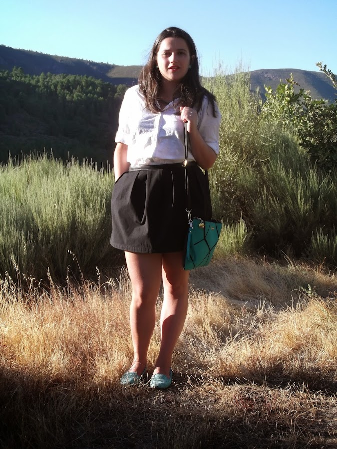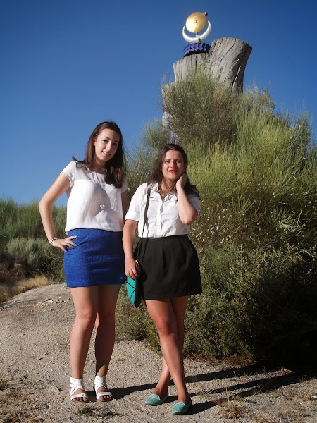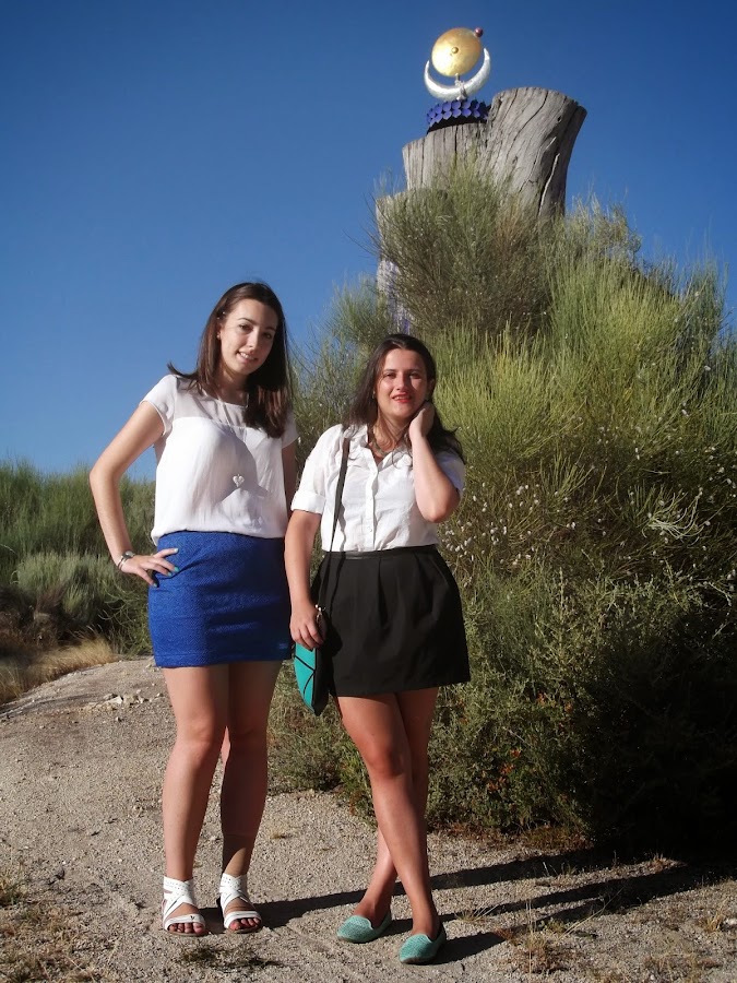 Quisimos combinar falda+camisa, parecen looks iguales, pero son diferentes. Por un lado, su look es una Blue&White sencillo, y por el otro lado, el mío es un Black&White con toques de color verde aguamarina.