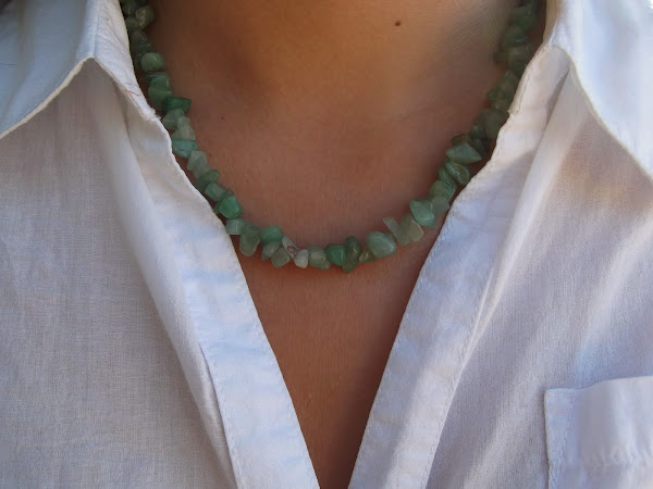 Como complementos utilicé unas slippers en verde aguamarina y un collar de piedras del mismo color.