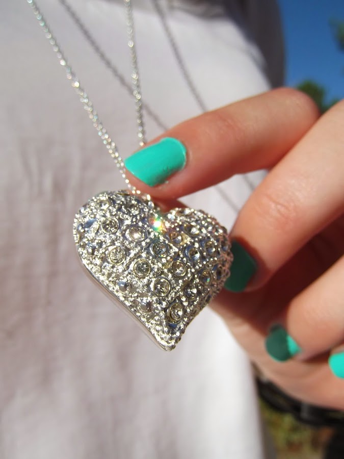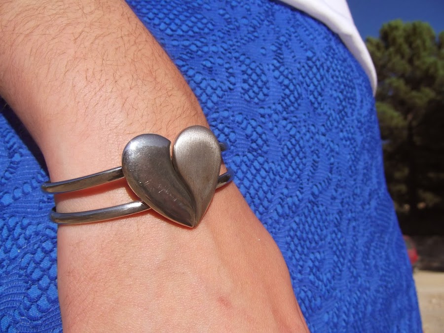 Como accesorios un collar y un brazalete en plateado. ¡Un look muy amoroso!