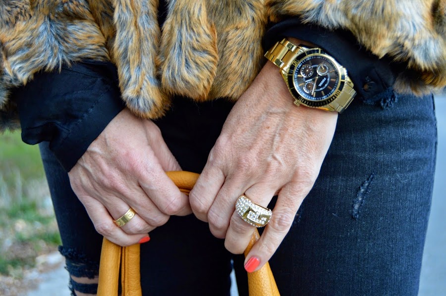 Aunque yo soy de plata, a veces me da por los complementos en oro, como en este caso. Esta chaqueta de pelo que compré en Primark, creo que es de las mejores compras que he hecho...