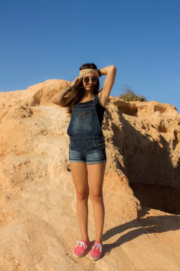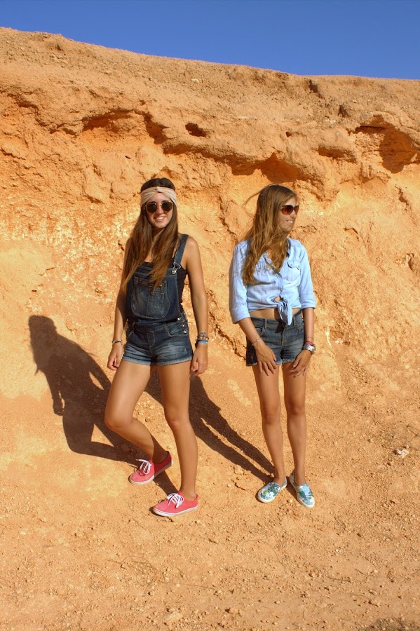 En cuanto a los looks, son bastante sencillos los dos: short vaquero con camisa también vaquera (en diferentes tonos para romper la monotonía del look) y peto vaquero, por otra parte, con turbante DIY como único complemento.