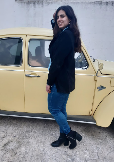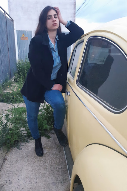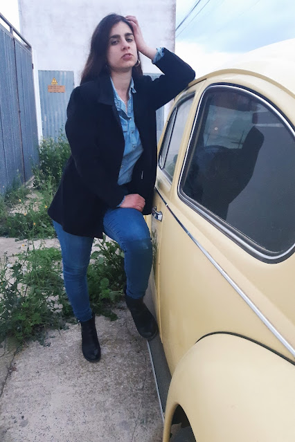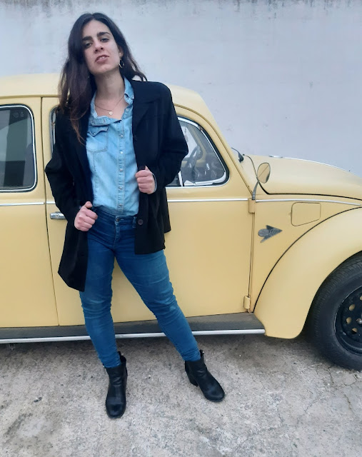 Buenos días, feliz semana. Espero que hayáis un buen finde. El mío sin duda lo ha sido. Después de un mes y medio, en Ibiza podemos hacer un poco más de vida, no sabéis la felicidad y cuanto lo necesitaba. Además de esto, os quiero enseñar un look que me gusta mucho, es un total look en vaquero. La camisa vaquera la tengo desde hace unas temporadas y es un básico al que siempre recurro. Para este look, las fotos son en un lugar un poco diferente de lo habitual. Como posiblemente habrás visto son con un coche amarillo que da contraste con el azul y el negro del look.