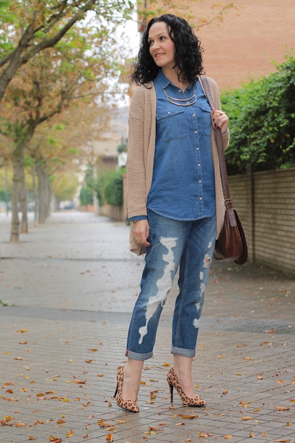 Como veis me estoy aficionando a los looks total denim. Además de que esta clase de estilismos me gustan, me resultan tan cómodos en mi día a día que casi se están volviendo imprescindibles en mis looks de diario. Me parecen ideales porque tan solo con cambiar los complementos obtengo diferentes estilismos a partir de las mismas prendas. En el total denim de hoy he añadido un cardigan color piedra y stilettos con estampado animal, unos complementos que siempre quedan bien con las prendas vaqueras. La nota final la he puesto con mi nuevo collar de Born Pretty. Me encantan los complementos de esta tienda online porque calidad precio están genial, además esta semana voy aprovechar que están celebrando su cuarto aniversario y ofrecen descuentos de hasta un 80% para hacerme con algunas cositas que tenía fichadas en mi wishlist.
