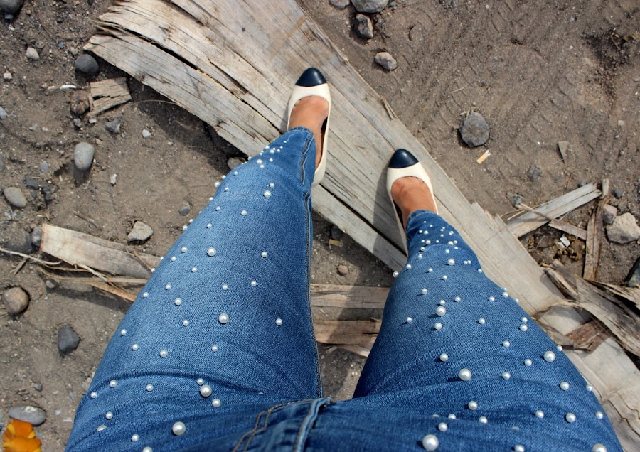 Este vaquero con perlas ha sido la sensación de la temporada. Yo me lo compré en verano y no lo había estrenado hasta ahora. La colocación de las perlas en vertical estiliza bastante las piernas.