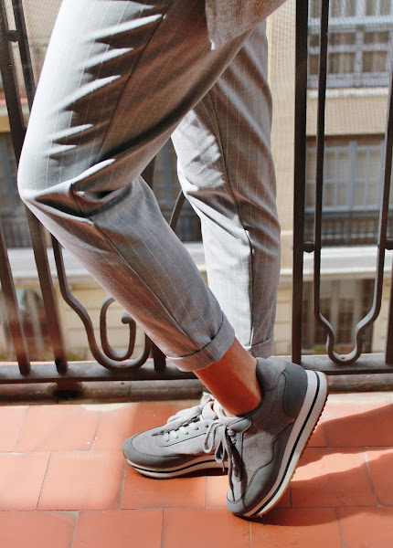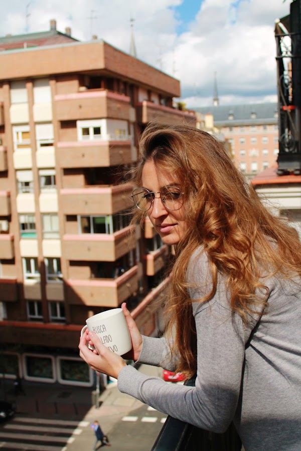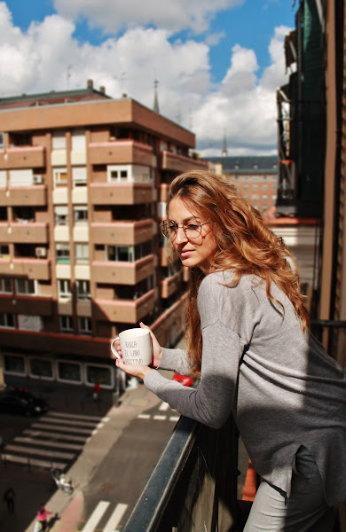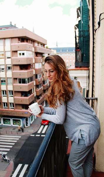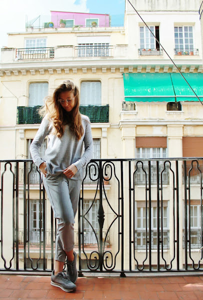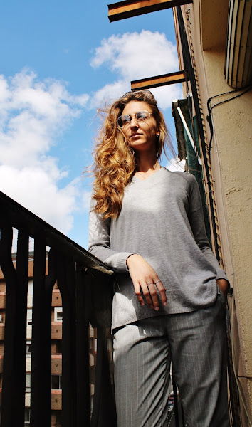 Hoy os quiero mostrar un total look en gris que me encanta y también un trocito de mi casa. Los edificios de Madrid con este estilo de balcón me enamoran y es que no será una enorme terraza donde tomar el sol pero es mi zona de moreno antes de que llegue el verano. Un poco de vitamina D siempre viene bien. Y ya empiezan los días de terracita.El look es muy cómodo y para el día a día, para una jornada de trabajo. Me gustaron las deportivas porque a pesar de ser planas tienen un poco de plataforma y parece que te elevan un poquito. El gris es uno de mis básicos últimamente y descubrí estos pantalones jogger con rayas que me parecieron muy bonitos y sobre todo muy cómodos. Y muy de moda ahora las gafas de montura metálica que me encantan.