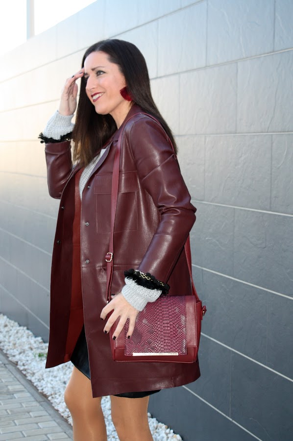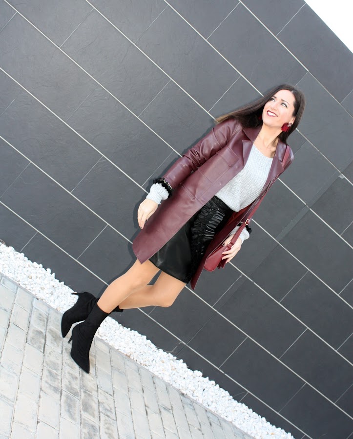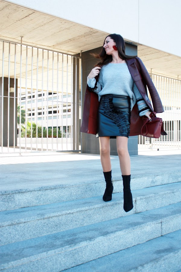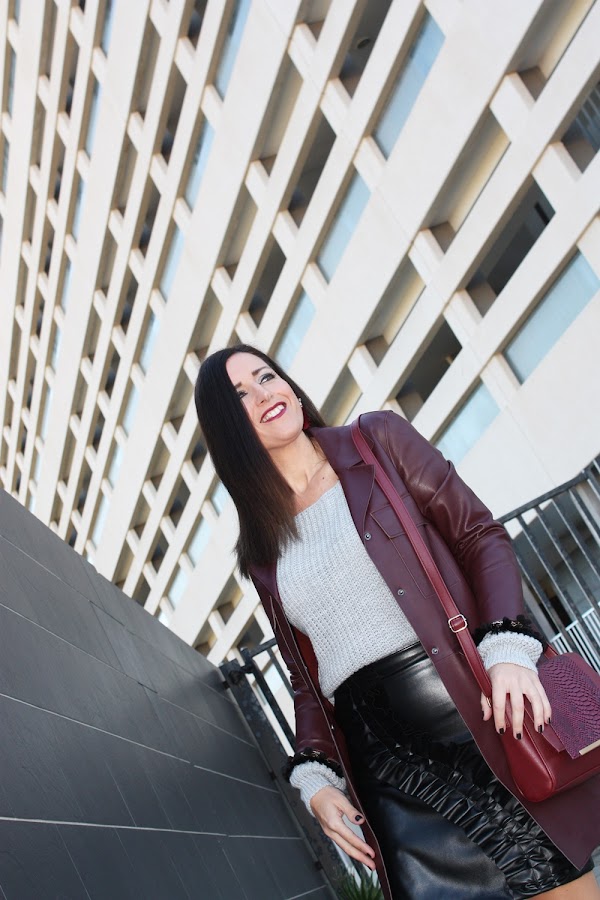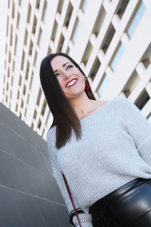 Un jersey que estoy segura le sacare muchísimo partido este invierno, en esta ocasión lo combiné con una falda en polipiel con drapeado delantero también de LA BELLE BOUTIQUE dando algunos toques de color con abrigo y bolso granate.