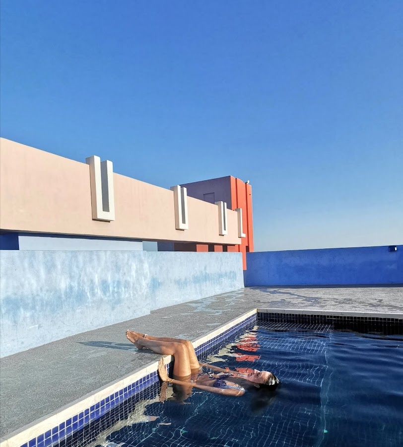 a espectacular piscina de la azotea de la muralla roja en forma de cruz latina que ya os mostré en este anterior post