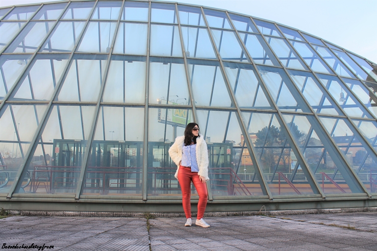 The combination of red with blue stripes I loved as soon as I put it with waxed pants of these sales (that you could already see in this post) and blouse of stripes in blue and white and submitted to give a chic touch (here). As complements I opted for a maxi necklace in red and the rest in white as are the sneakers, the bag and the plush coat (seen also in this post). What do you think?