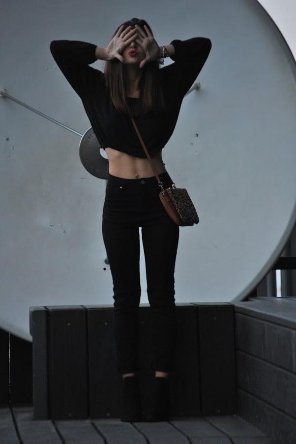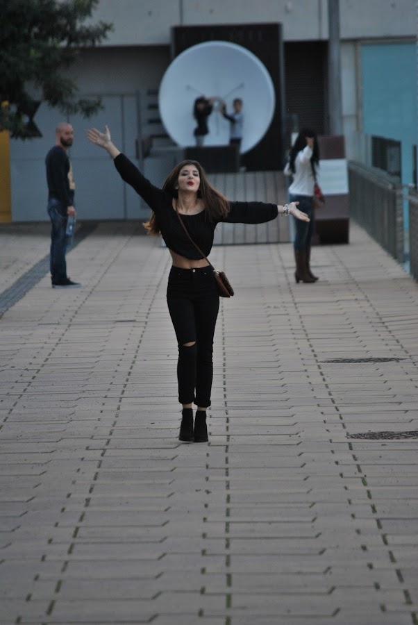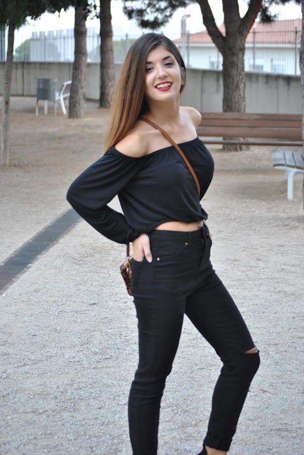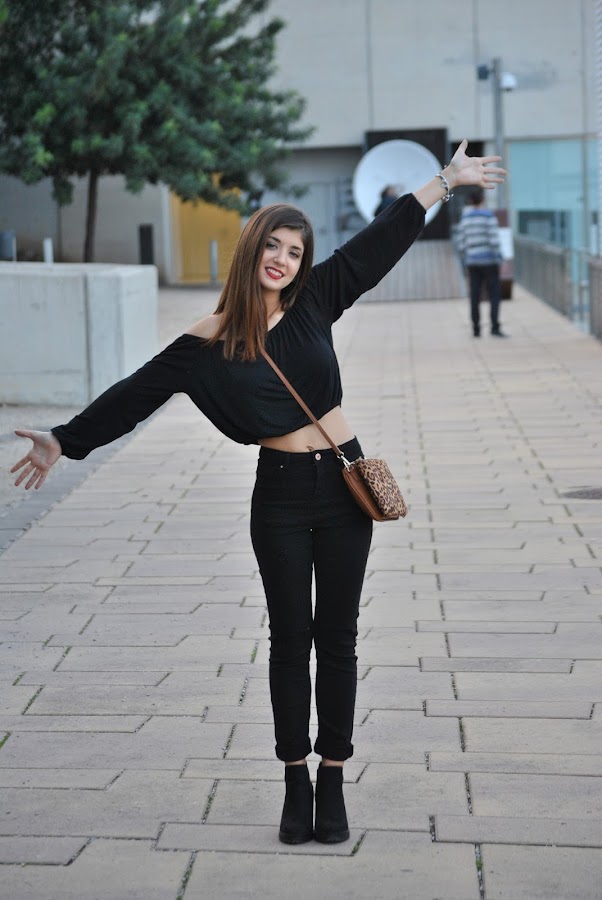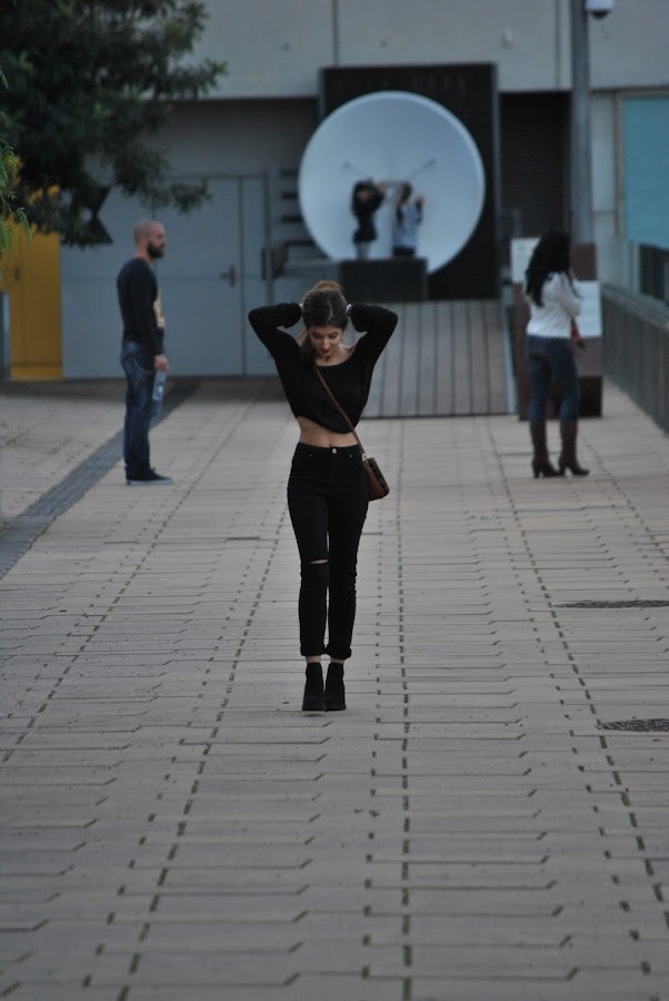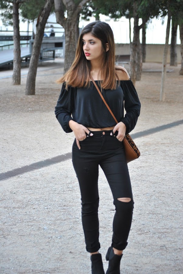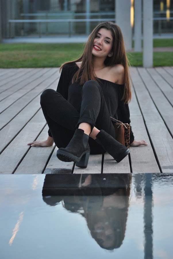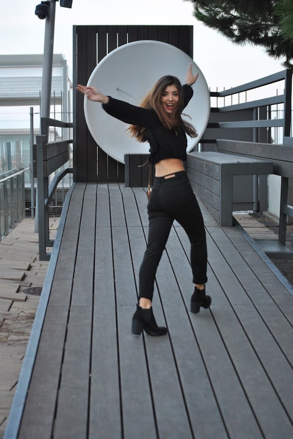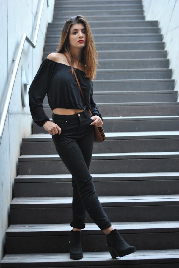 I decided to wear this booties from Bershka that I was so impatient to wear them for the first time. I was also wearing some black high waisted jeans with also black off the shoulders crop top. TOTAL BLACK TIME! Less is more, you know.