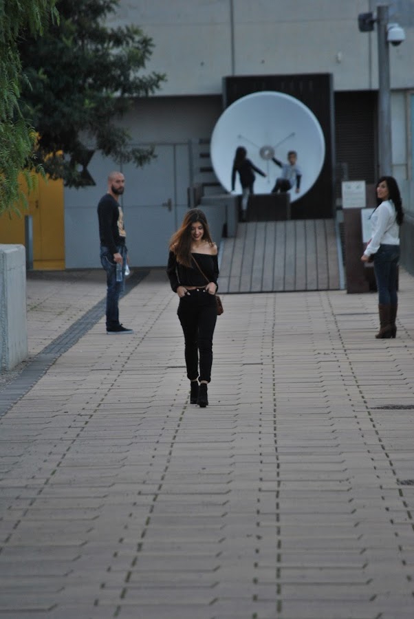 Cosmocaixa es un lugar muy grande (sigo teniendo dudas de si lo vimos todo...) con lo cual tenía que buscarme un outfit cómodo y discreto, que pudiera aguantar todo el día sin problemas. Como éstos días el tiempo está un poco loco y pasa del frío al calor de una forma estrepitosa y sin previo aviso, debía asegurarme de vestirme de forma que pudiera aguantar las temperaturas, tanto las frías como las calientes. Me decidí por unos botines de Bershka que estaba ansiosa por estrenar, de tacón gordo y suela track, con pantalones negros de tiro alto con las rodillas rasgadas y crop top de manga larga con los hombros descubiertos, también negros. ¡TOTAL BLACK TIME! Desde luego, menos es más.