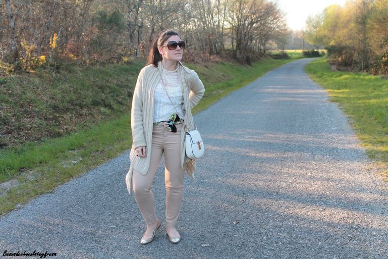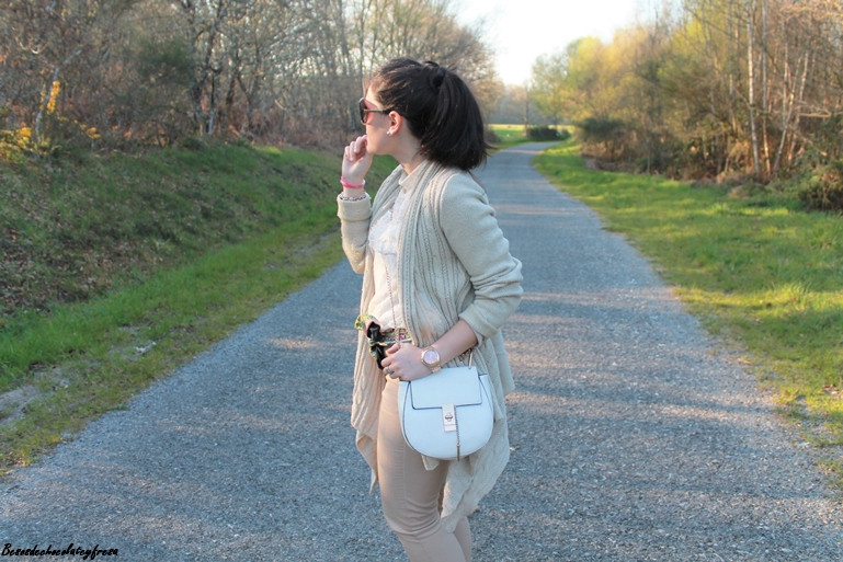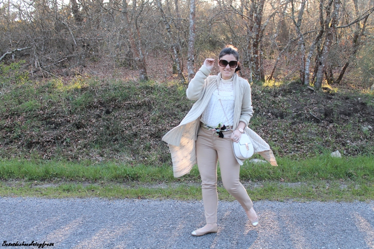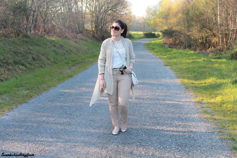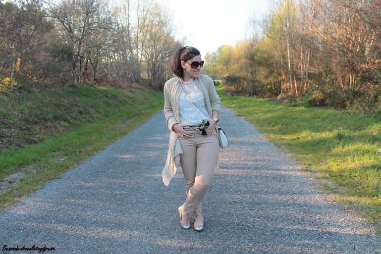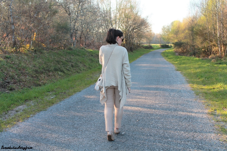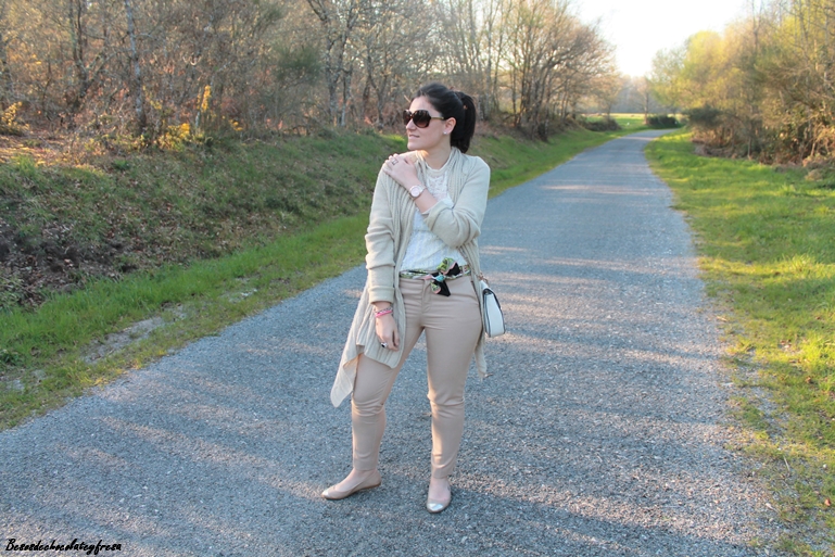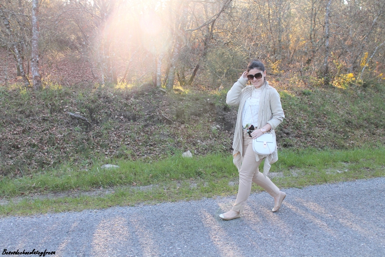 El color nude es el color parecido al de la piel, un color fácil de combinar y que siempre es un acierto llevar. Para estas fotos llevo un total look en color nude, desde los pies, hasta los complementos.