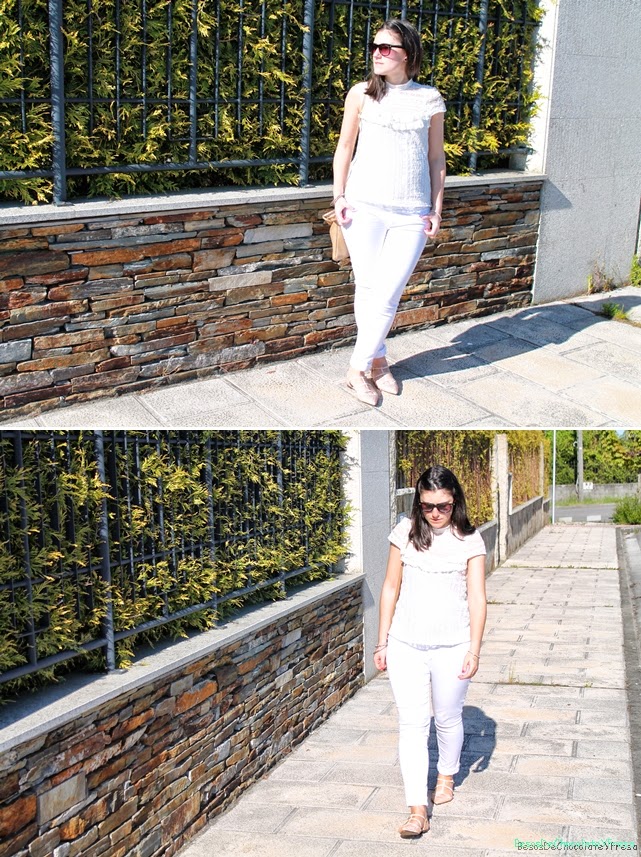 Por eso uno de los colores que más me gustan para esta época son los tonos claros como el blanco y si es un total white con toques de nude como este outfit, mucho más.
