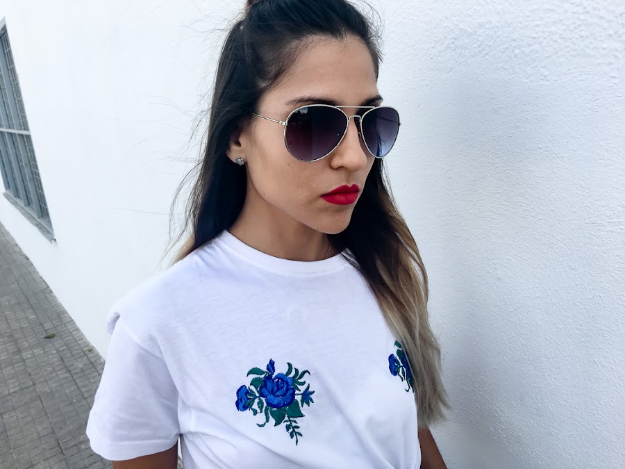 La he combinado con mi camiseta de DELOUKSTORE y mis tacones de pedrería de JESSICA BUURMAN.