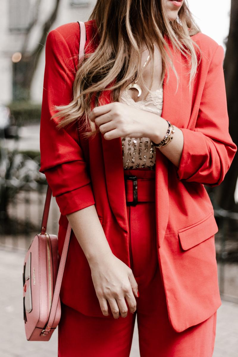 Hace un par de años vimos cómo se reinventaron los trajes sastres femeninos, pasaron de ser prendas aburridas e institucionales a lo más trendy. No tienes que necesariamente dedicarte al “fashion” para poder vestirte con las últimas tendencias y justamente por eso hoy quiero platicarte más del TRAJE ROJO, cómo puedes combinarlo, el efecto que causa y muchas razones más de porque debes ya de tener uno en tu guardarropa.Un TRAJE ROJO definitivamente no te hará pasar desapercibida nunca. Hemos visto a muchas famosas usarlos, propuestas en pasarelas de diseñadores como Isabel Marant, Emilio Pucci y Lanvin. Algo que me encanta es cuando estas propuestas llegan a las calles y se apoderan del street style así que es momento que te olvides de los colores tradicionales como el negro, gris y azul.