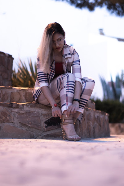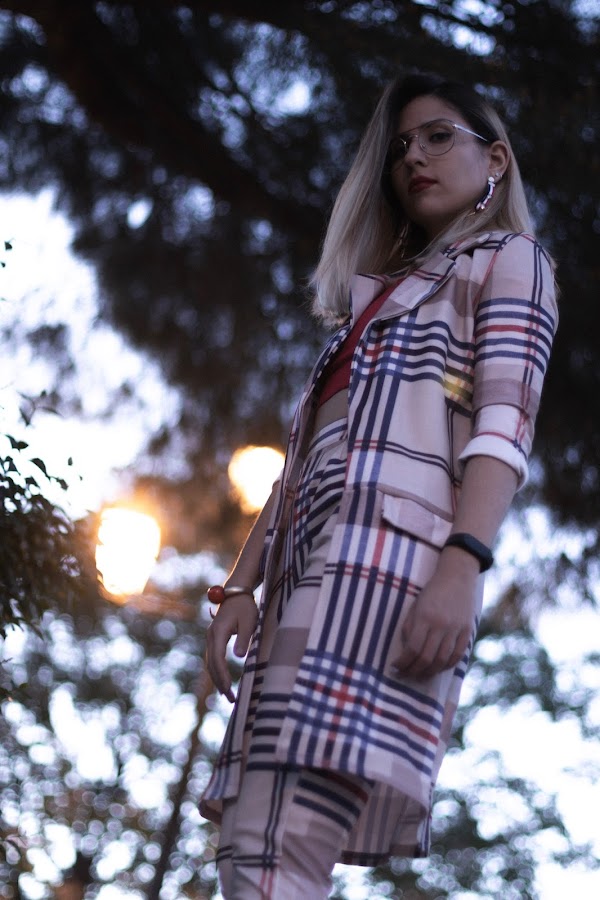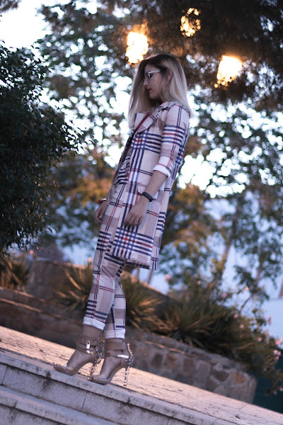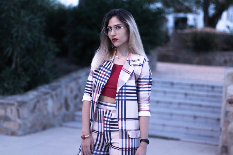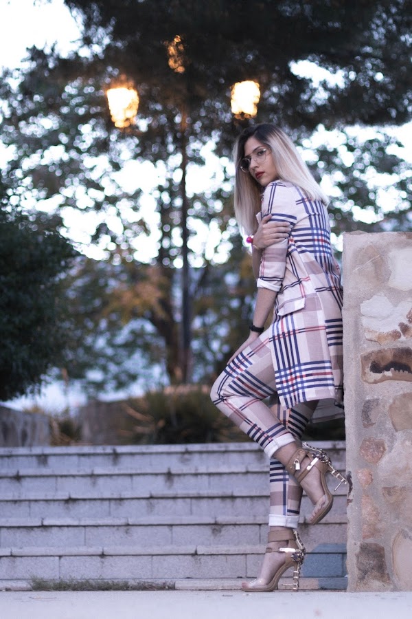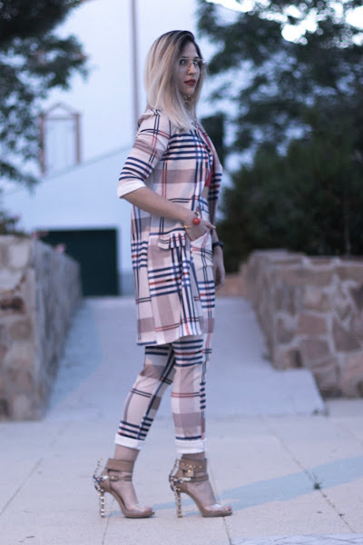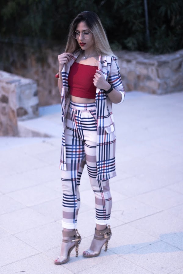 Los que me seguís en las redes (sobre todo en Instagram y 21Buttons), ya habréis visto este look, pero se me pasó dejarlo aquí en el blog porque se me hizo tarde. Os enseño un precioso conjunto de blazer y pantalón, un traje estampado de cuadros combinando un color beige, con cuadros en azul, rojo y blanco. La blazer es de corte largo y queda genial!! Es de IKRUSH.