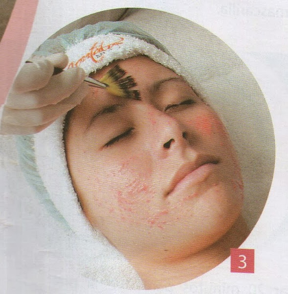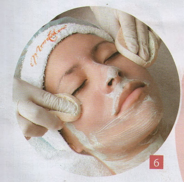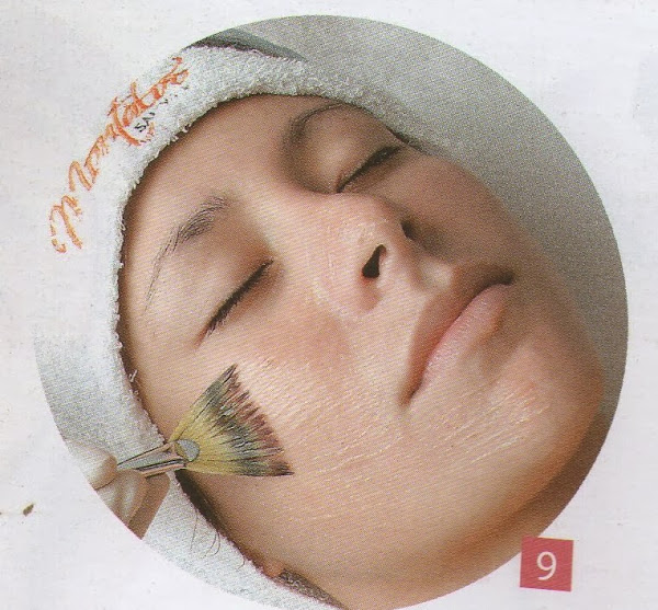 11-Mascarilla anti acné: con la brocha de abanico esparcir la mascarilla a base de extracto de tomate, ajos y azufre disoluble.