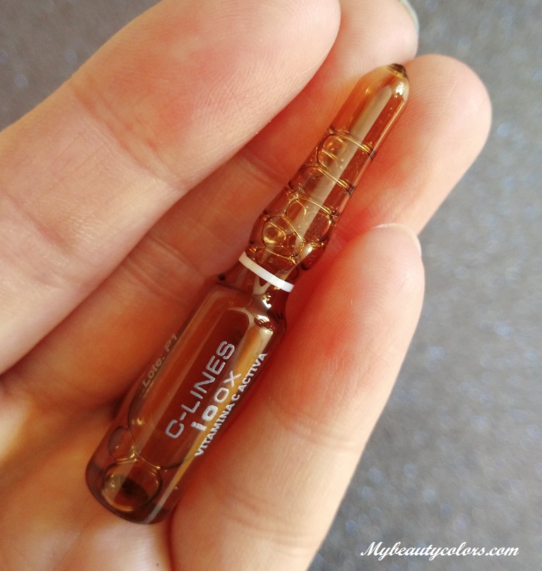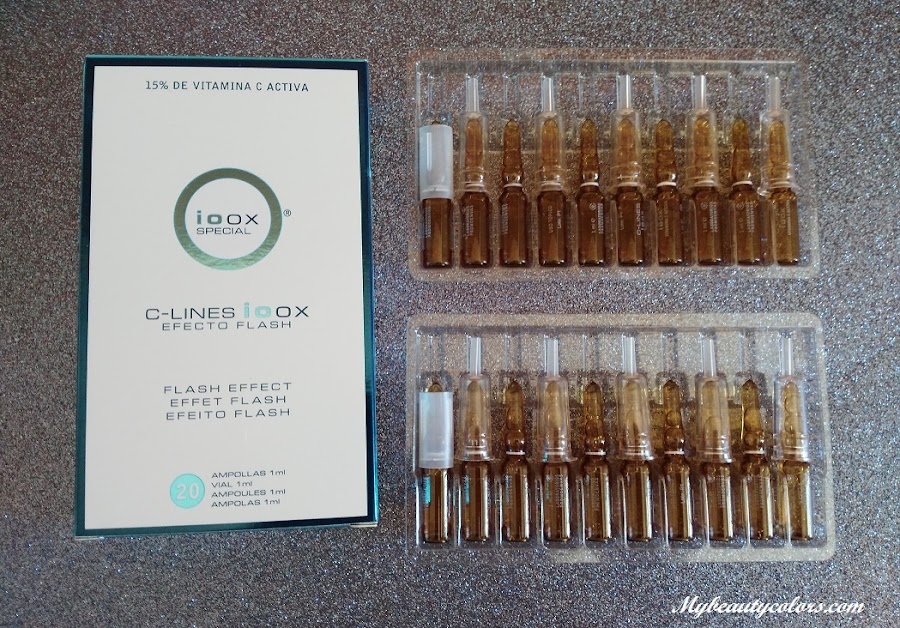 -C-LINES IOOX EFECTO FLASH: El otro producto que recibí fueron estas ampollas unidosis efecto flash, que contienen una solución de Vitamina C (ácido ascórbico) al 15 %, colágeno y vitaminas E y F.