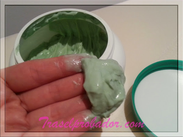 Viene en un envase de plástico duro, con una gran apertura para poder coger bien el producto. Contiene 450ml, aunque también está disponible en un formato más pequeño. Dentro encontraremos una crema densa, de color verde grisáceo (realmente no es muy atractiva?) y con un perfume intenso. A mí este aroma herbal me resulta agradable, me gusta, aunque hay gente a quien no le va demasiado.