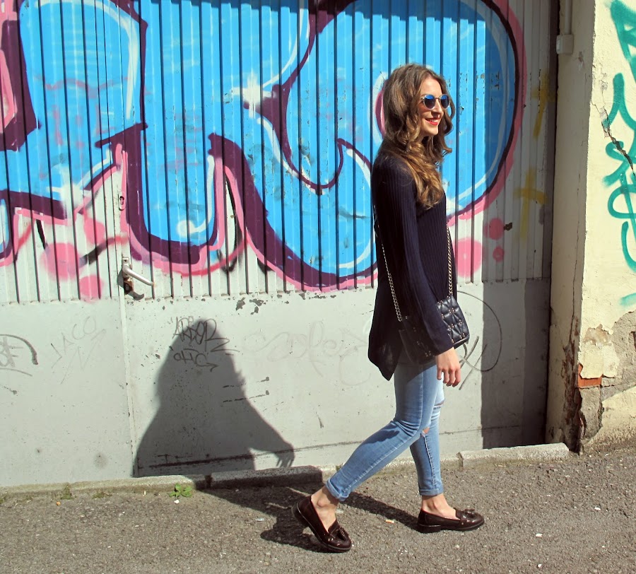 Hoy os dejo un look working girl, práctico y a la vez chic, para un día largo de trabajo, donde prima la comodidad por eso lo combino con mocasines y no con tacones. porque yo no soy de las afortunadas que podría aguantar un día entero con los stilettos puestos, por mucho que me gusten.