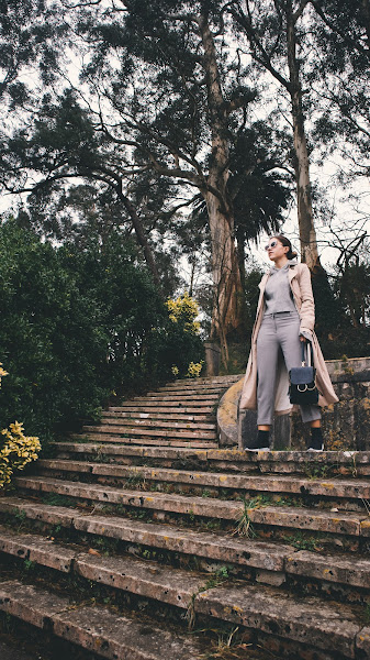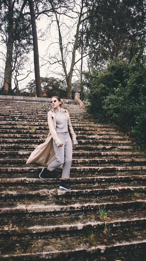 Hoy lo he combinado con un total look en tono gris.