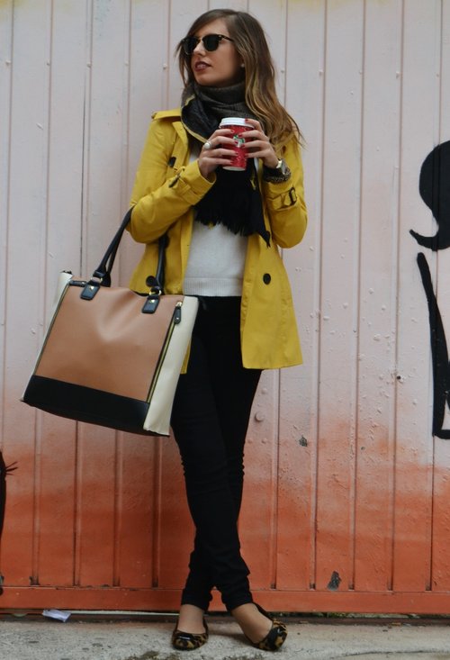 Noto que las bufandas color mostaza se estan usando y mucho!Son hermosas y combinan con ropa oscura muy bien!