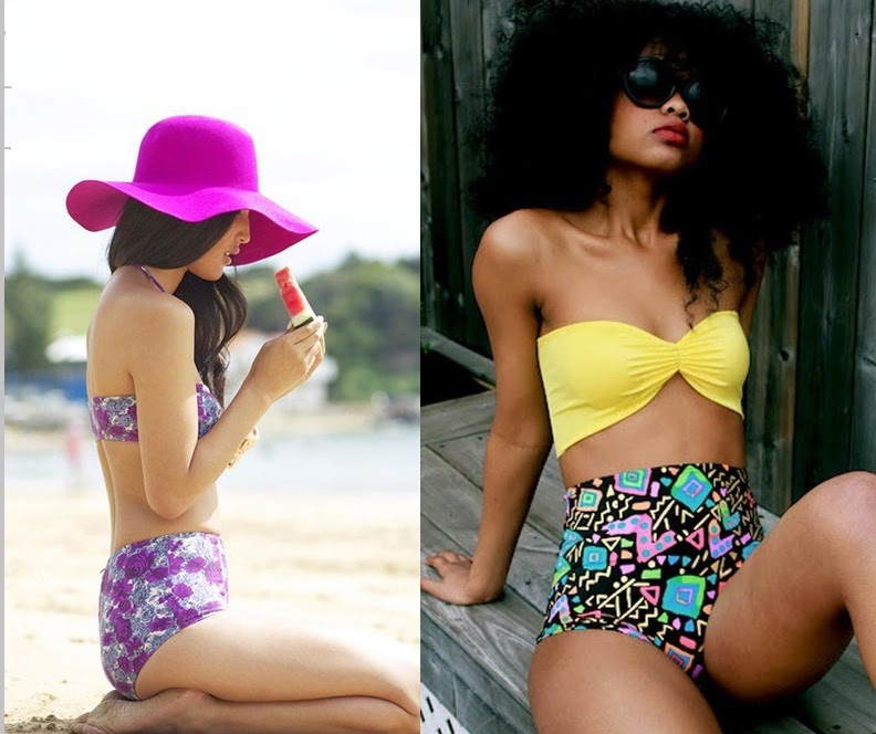 Buenos días!! Se acerca el verano a pasos agigantados y ya vamos pensando en renovar bikinis para lucirlos en la playa/ piscina... qué os parecen estos inspirados en los 50? Ya se están abriendo paso en las tiendas y los podemos encontrar en diferentes formatos y con diversos estampados, mi favoritos son los de rayas y los tropicales. Por supuesto habrá quién los adore y quien los odie. Y tú? Te apuntas a lucir como una auténtica pin-up este verano? O sois de las que le gusta enseñar más carne con bikinis brasileños?