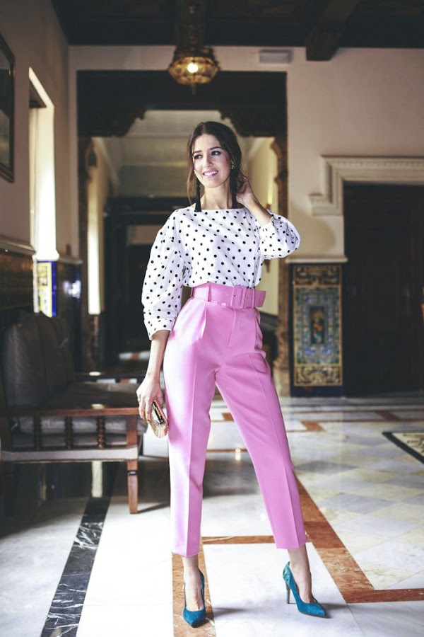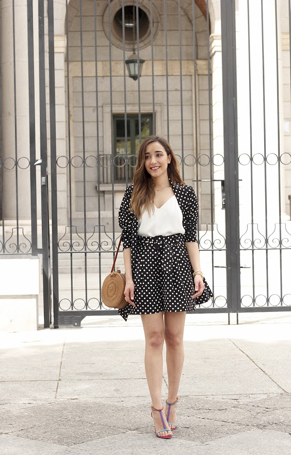 Cambiando a un tema más alegre, como os prometí, tenéis nuevo post de inspiración de una de las tendencias ochenteras que más estamos y veremos en las tiendas, se trata de los lunares. De diferentes tamaños, mini, macro y en cualquier prenda, desde camiseta, camisa hasta falda o vestido/mono. Esta tendencia la podemos combinar de infinidad de formas para estar más estilosas y a la moda: como traje dos piezas (muy en tendencia, también), con un estilo más roquero gracias a la biker o chupa de cuero, con falda vaquera para un toque más casual. Si piensas que los lunares son sólo para el día a día te diré que también es apta para momentos más formales (como una boda, una comunión, que aprovechando esto, tengo pensado hacer un post), y en cuanto a complementos un bolsito de mimbre o con sombrero con paja.