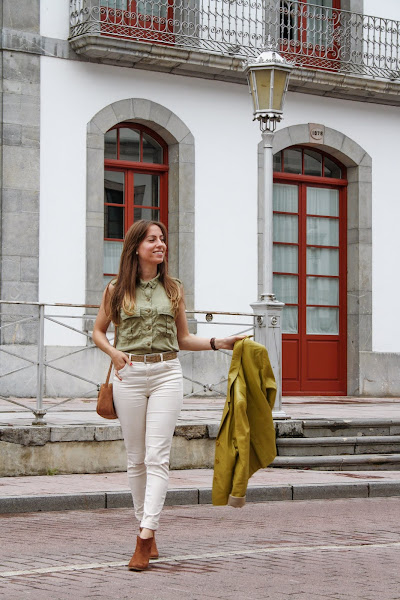 La semana continúa y me niego a quedarme rezagada, así que muy atenta a Instagram. Probablemente ahora mismo esté compartiendo contigo una espectacular tarde en uno de mis restaurantes favoritos de mi adorada ciudad. Mientras tanto, te dejo disfrutando de la propuesta de moda para esta semana. Me apunto a la tendencia militar de una manera sutil y elegante, con esta camisa en tono verde caqui ¿Qué te parece?