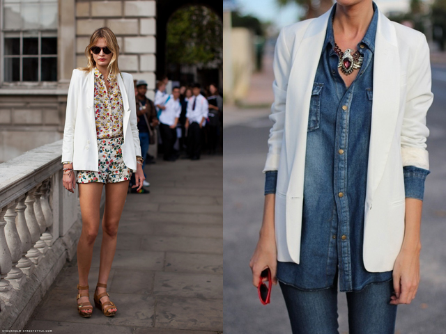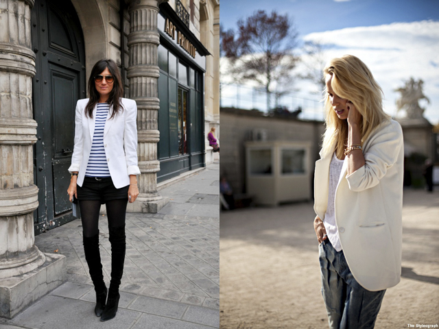 Voguettes are arduous supporter of this trend, we just have to take a look at how many times Emmanuelle Alt and Geraldine Saglio wear it, but not just them, some street style stalwarts like Hanneli Mustaparta, Miroslava Duma or Elin Kling have also given their vote in favor for white blazers.