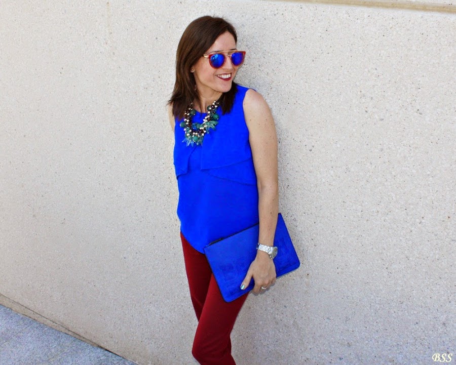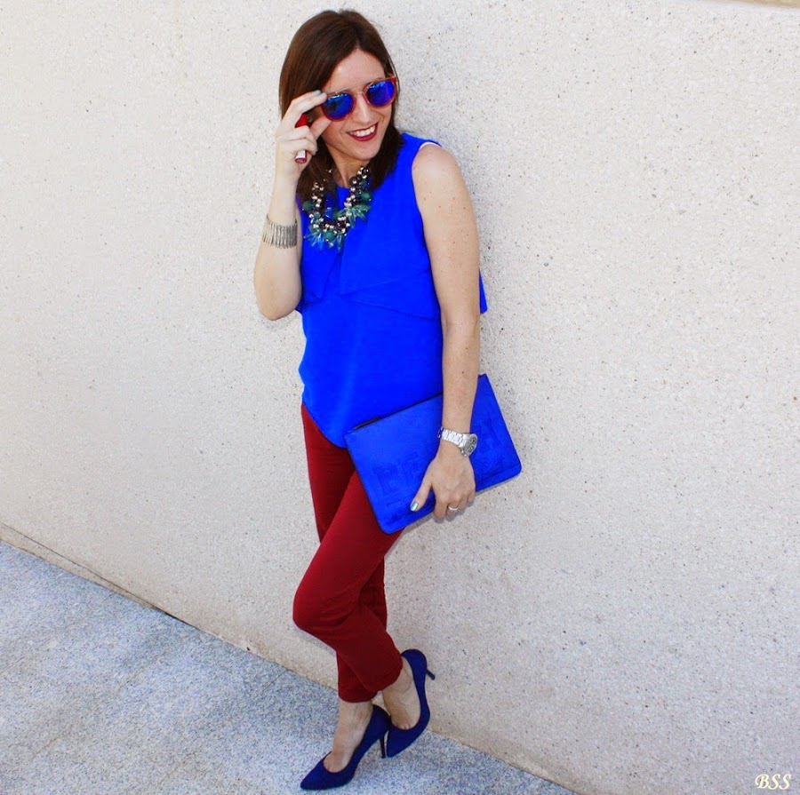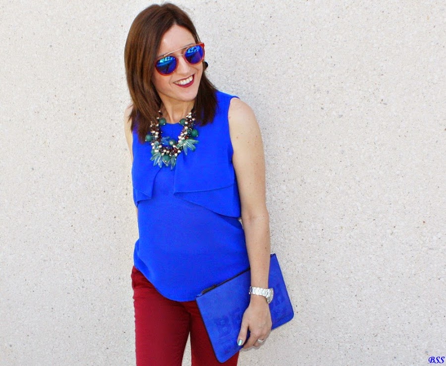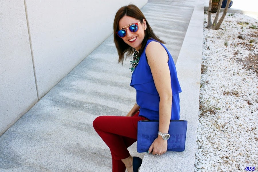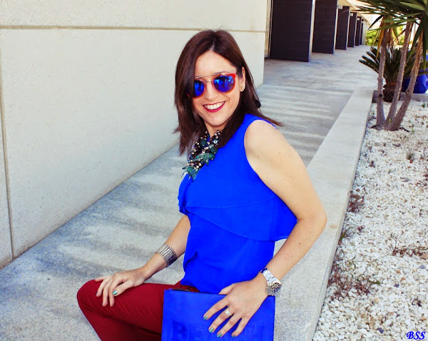 Esta vez me he rendido a unas con forma redondeada y lentes de espejo en azul, sin duda para mi, complemento indispensable para darle el toque perfecto a un look sencillo como este.