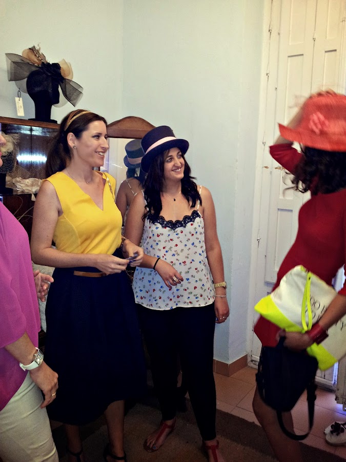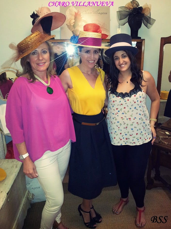 Charo Villanueva y su encantadora hija Andrea nos permitieron probar muchos de los tocados y sombreros que trajeron para la ocasión...Os imagináis lo feliz que estaba bajo tanto sombrero!!! jaaajaa Mil gracias a las dos...